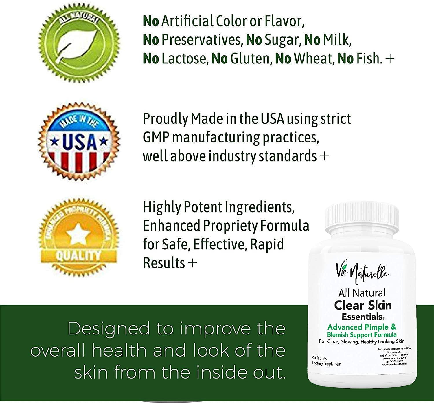 - ALL NATURAL & EFFECTIVE FORMULA: Made in the USA. Vie Naturelle Acne Pills are completely free of fillers, binders, or artificial ingredients with NO unwanted side effects. This is as clean and pure as it gets.