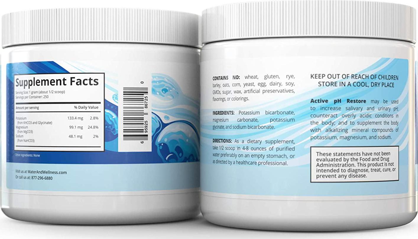 - EASY TO USE AND SIMPLE: Active pH Restore is made with just three ingredients: potassium, magnesium, and sodium. The simplicity and purity of our formula enhances its effectiveness to combat other calcium supplements and even alkaline water. Our powder formula makes it simple to mix into purified water, juice, coffee or any non-carbonated beverage. Use as needed, and can be taken daily as a dietary supplement.