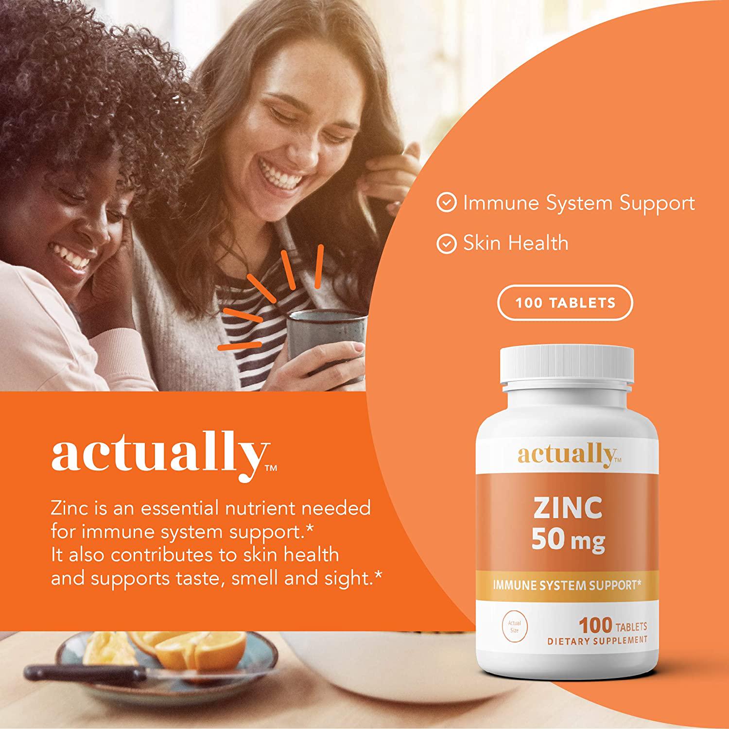 Actually Zinc 50mg Tablets, 100ct - Immune System Support for Adults – 100-Day Supply