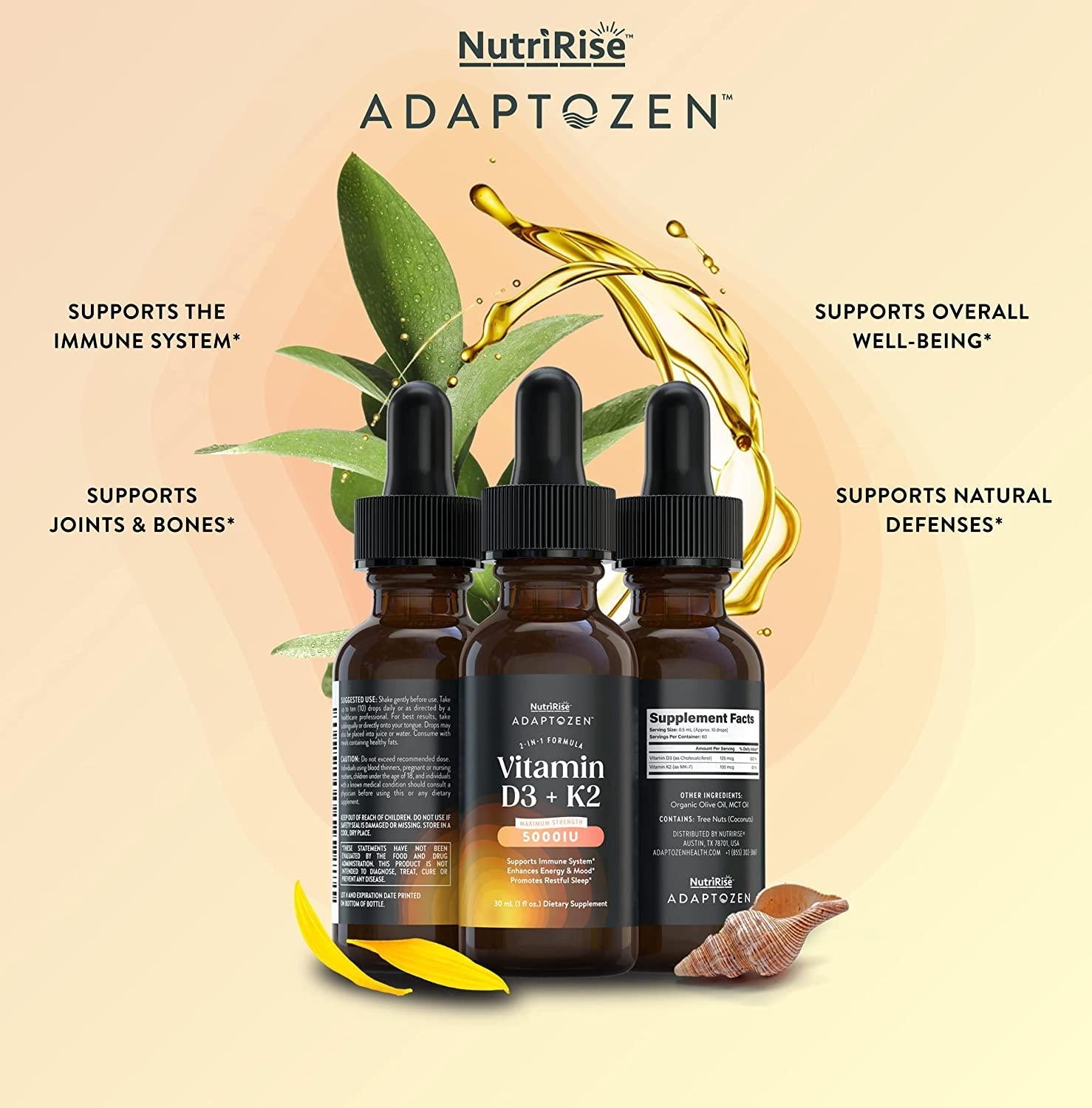 AdaptoZen Vitamin D3 + K2 Drops - 5000 IU: Support for Energy, Well-Being, Immunity and Joint Comfort, Vegetarian, Gluten-Free Formula for Men and Women + MCT Oil in Partnership with Michael Beckwith