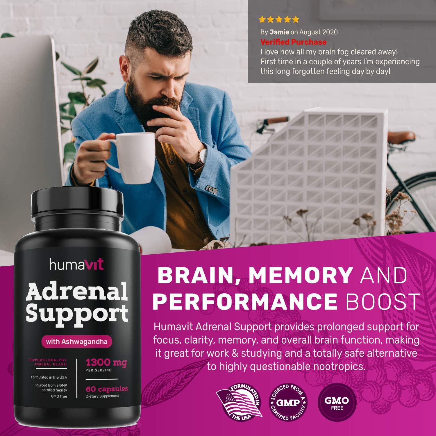 - BRAIN SUPPLELEMENT, FOCUS AND PERFORMANCE BOOST. Humavit Adrenal Support provides prolonged support for focus, clarity, memory, and overall brain function, making it great for work & studying and a totally safe alternative to highly questionable nootropics.