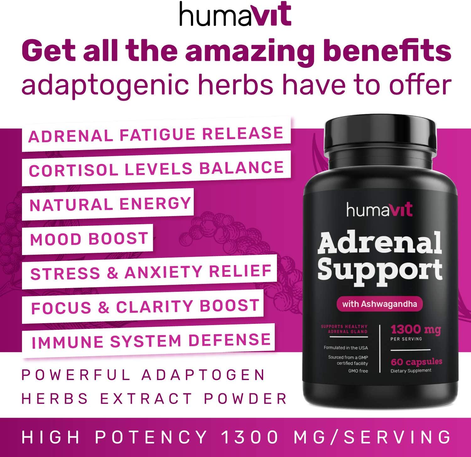 If youre looking for a natural and effective way to enhance your adrenal gland function, balance cortisol levels, reduce stress and anxiety, improve mental focus & clarity, elevate stamina & energy, and fortify your immune system, youre in the right place! At Humavit we pride ourselves with using only high quality adaptogen blend, so you can actually get all the real benefits adrenal support supplements have to offer.