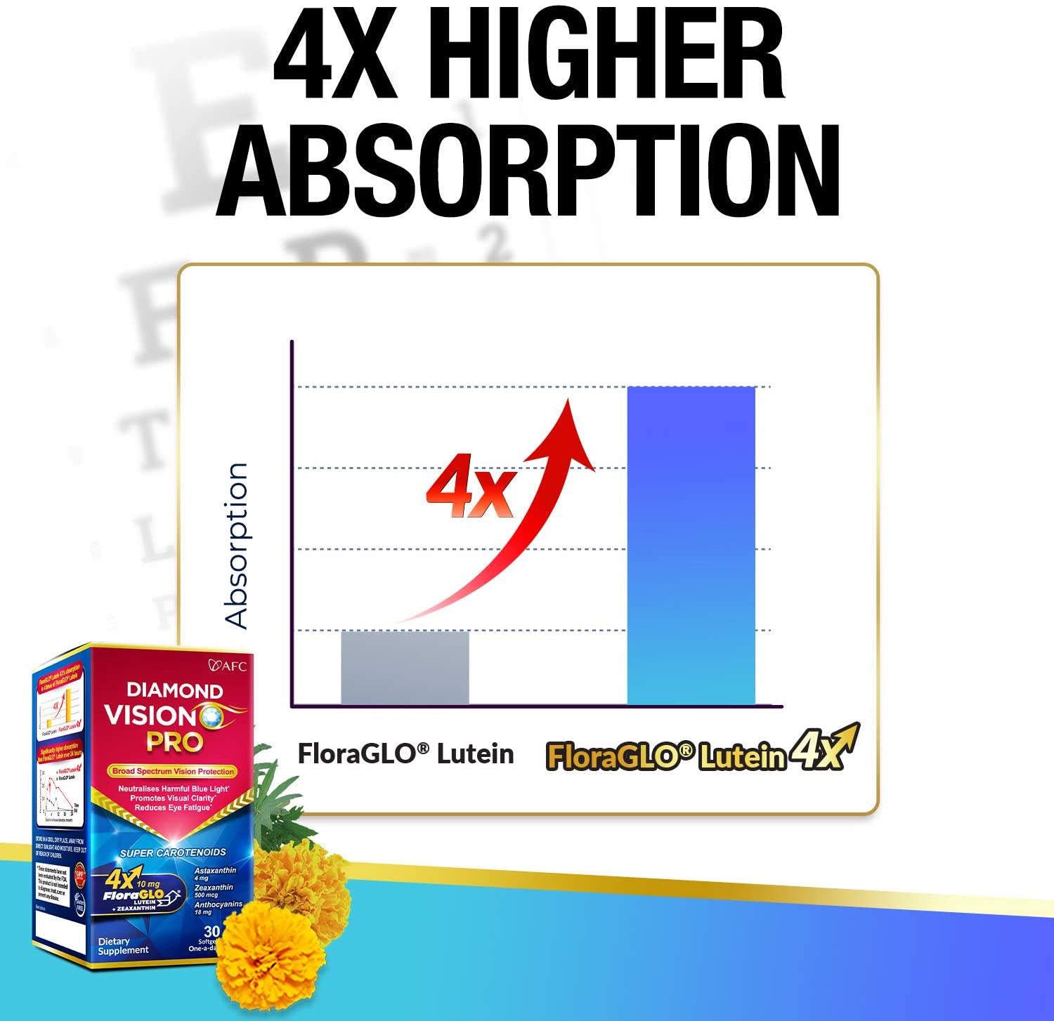 AFC Japan Diamond Vision PRO - Eye Formula with FloraGLO Lutein 4X, Zeaxanthin, Astaxanthin and Bilberry Extract for Eye Strain, Eye Fatigue, Blurry and Poor Vision, Dry Eye, Macular Health, 30 Counts