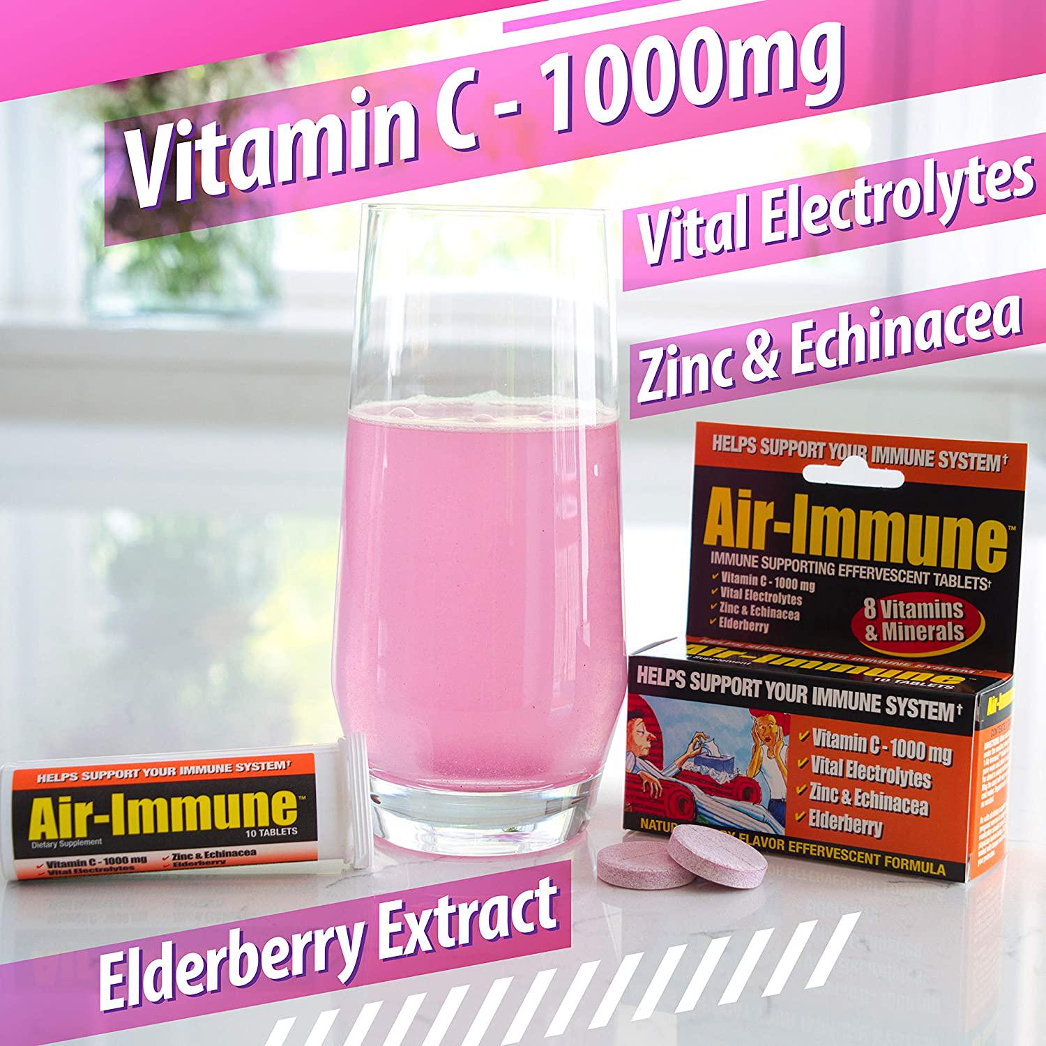 - Powerful Immune Support For Hours: Air Immune Effervescent Tablets contain a powerful herbal and amino blend which is packed with hydration boosting electrolytes, free radical fighting antioxidants and recovering boosting nutrients