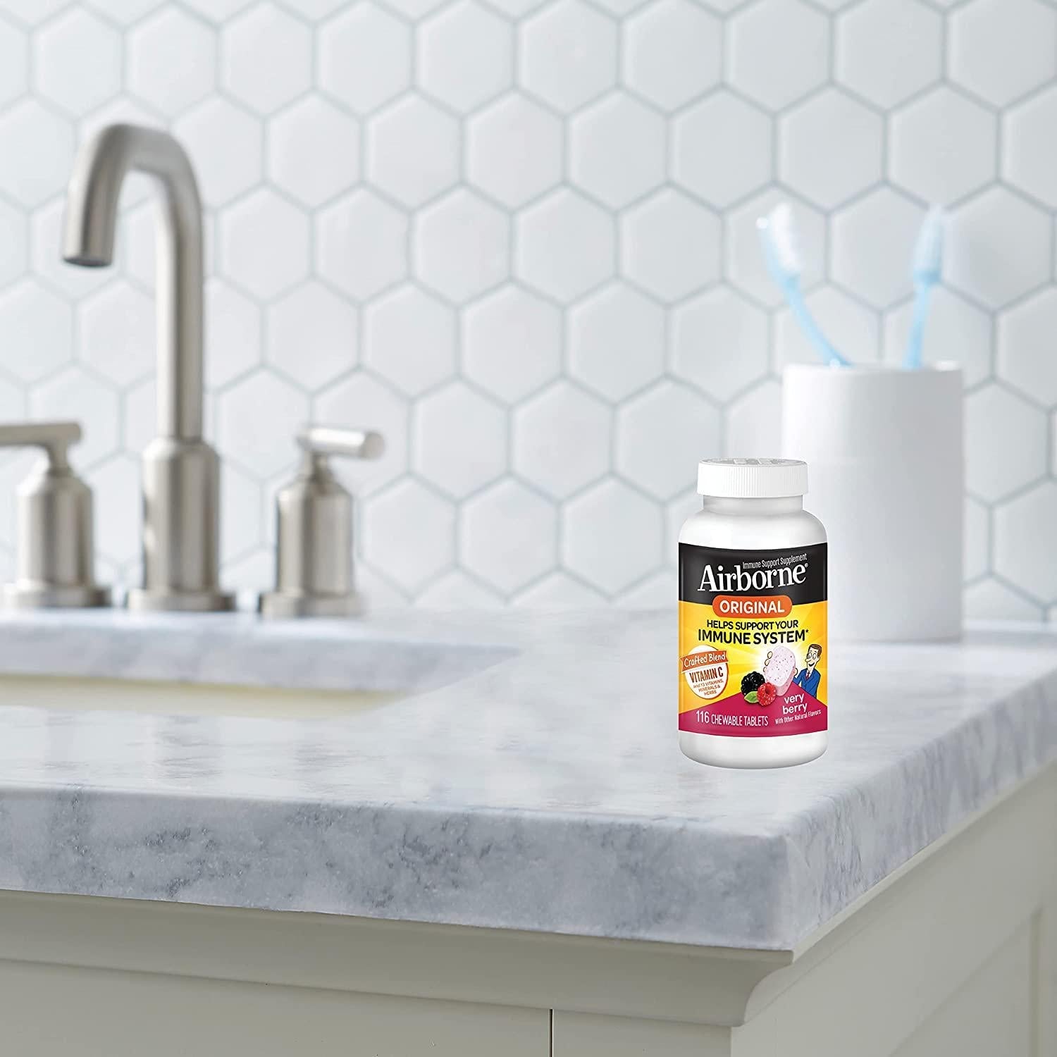 Airborne 1000mg Vitamin C Chewable Tablets with Zinc, Immune Support Supplement with Powerful Antioxidants Vitamins A C and E - (116 count bottle), Very Berry Flavor, Gluten-Free