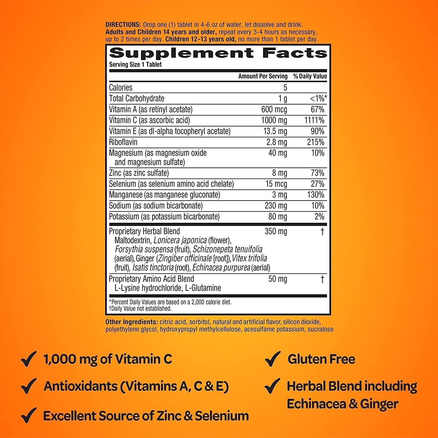 Delivers real immune support in a fizzy tablet that dissolves in cold or hot water. A unique combination of 14 vitamins, minerals and herbs.