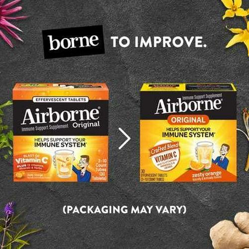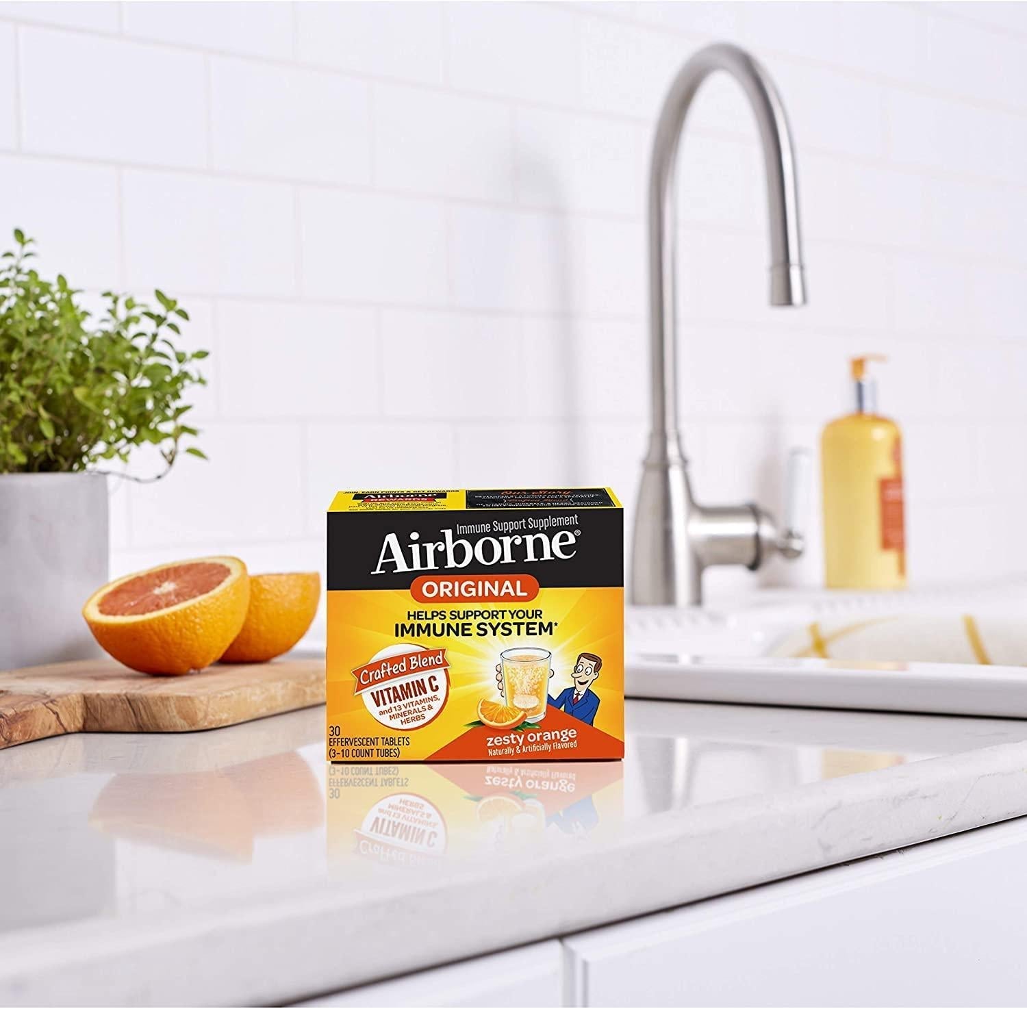 30 tablets, airborne 10030, effervescent tablet, immune support, vitamin c, zesty orange