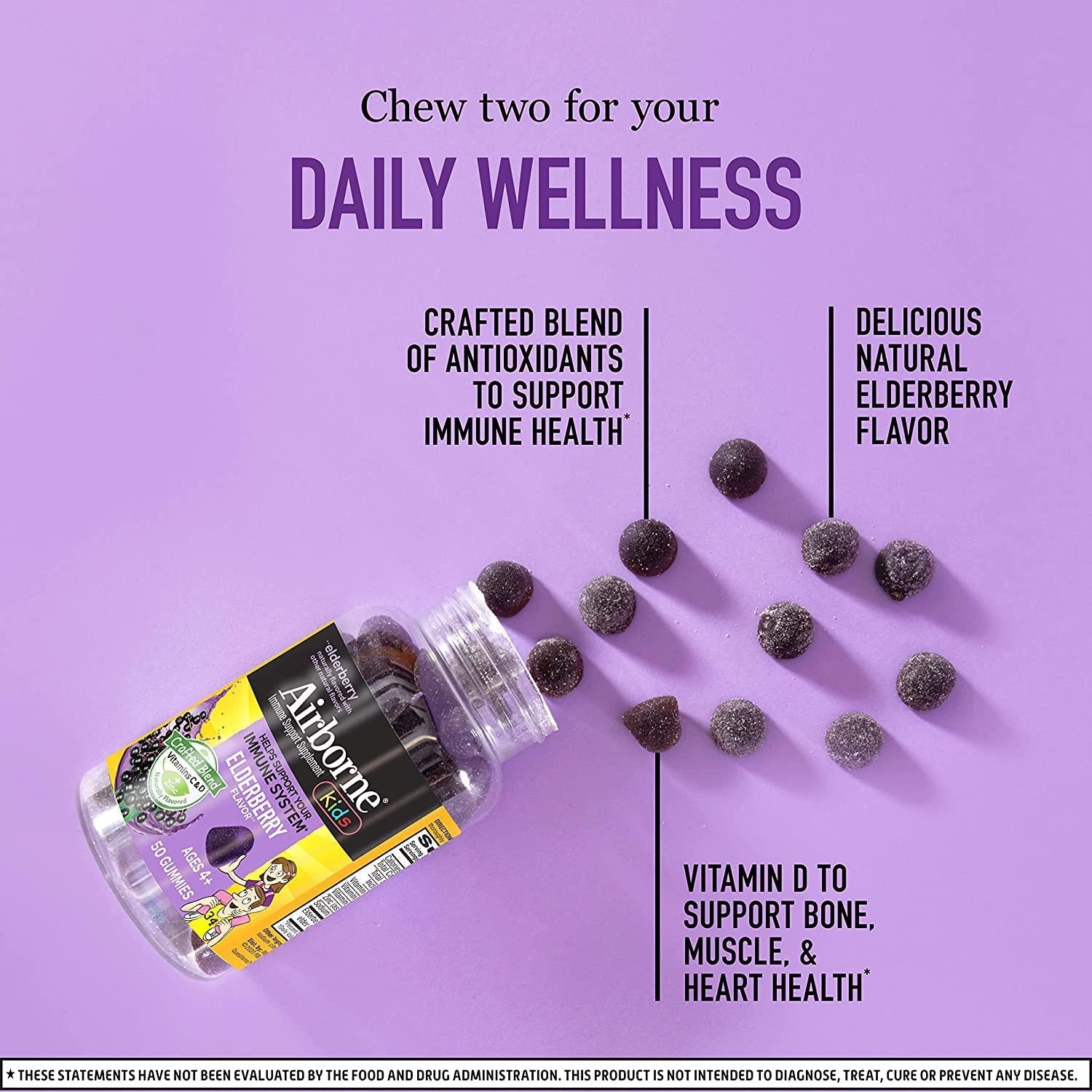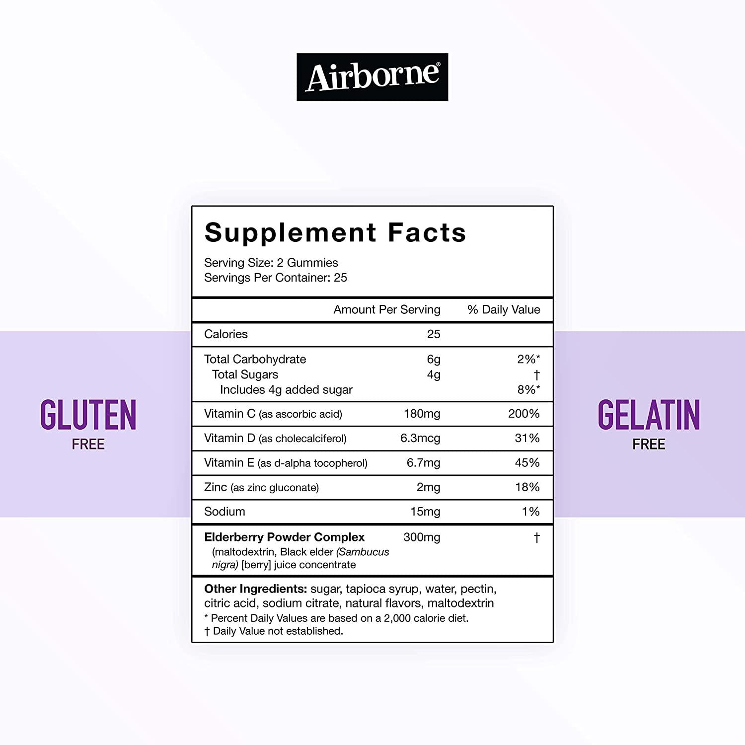 - VITAMIN C: Airborne Elderberry flavored gummies are packed with 200% of your daily value of Vitamin C per serving, to help support your immune system.*
