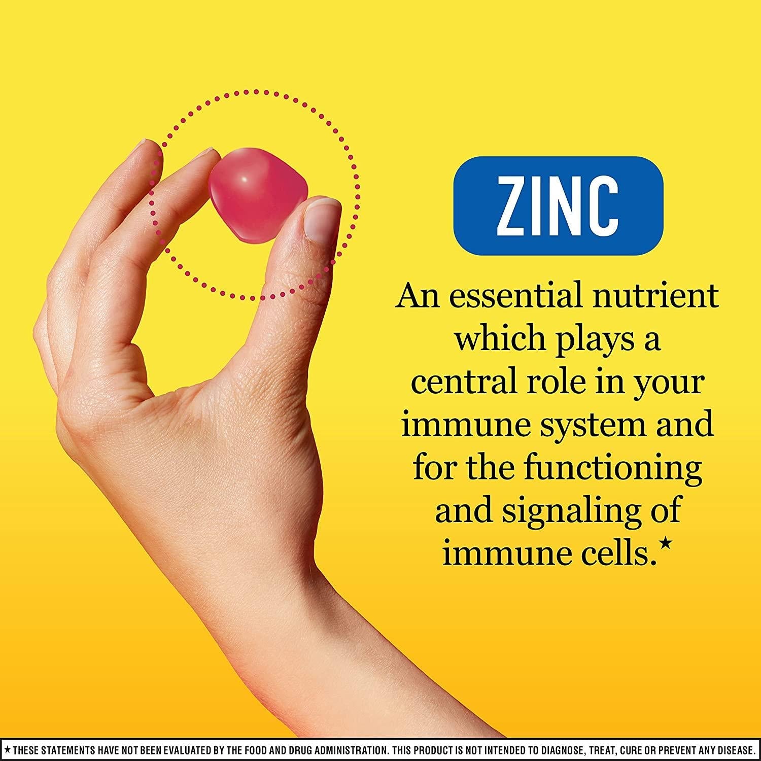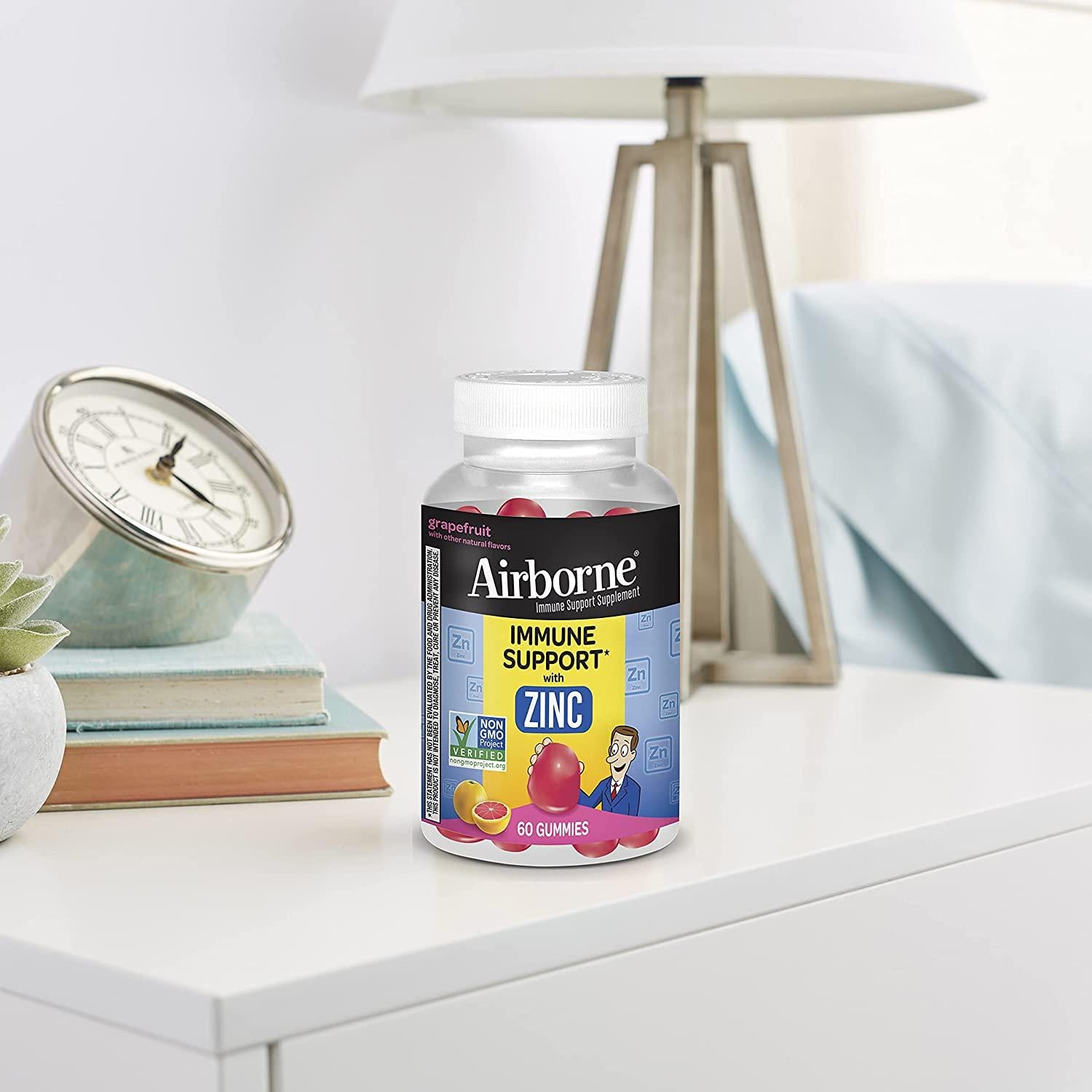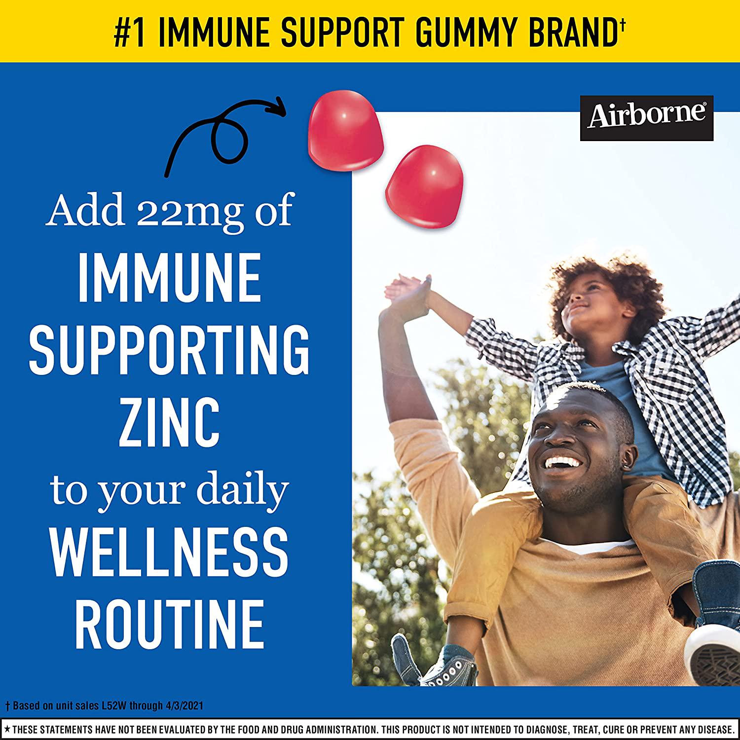 - AIRBORNE IMMUNE SUPPORT WITH ZINC GUMMIES: One serving of our great tasting Immune Support + Zinc gummies contains 200% of your Daily Value of Zinc, which is essential for the functioning and signaling of immune cells and plays a central role in your immune system.