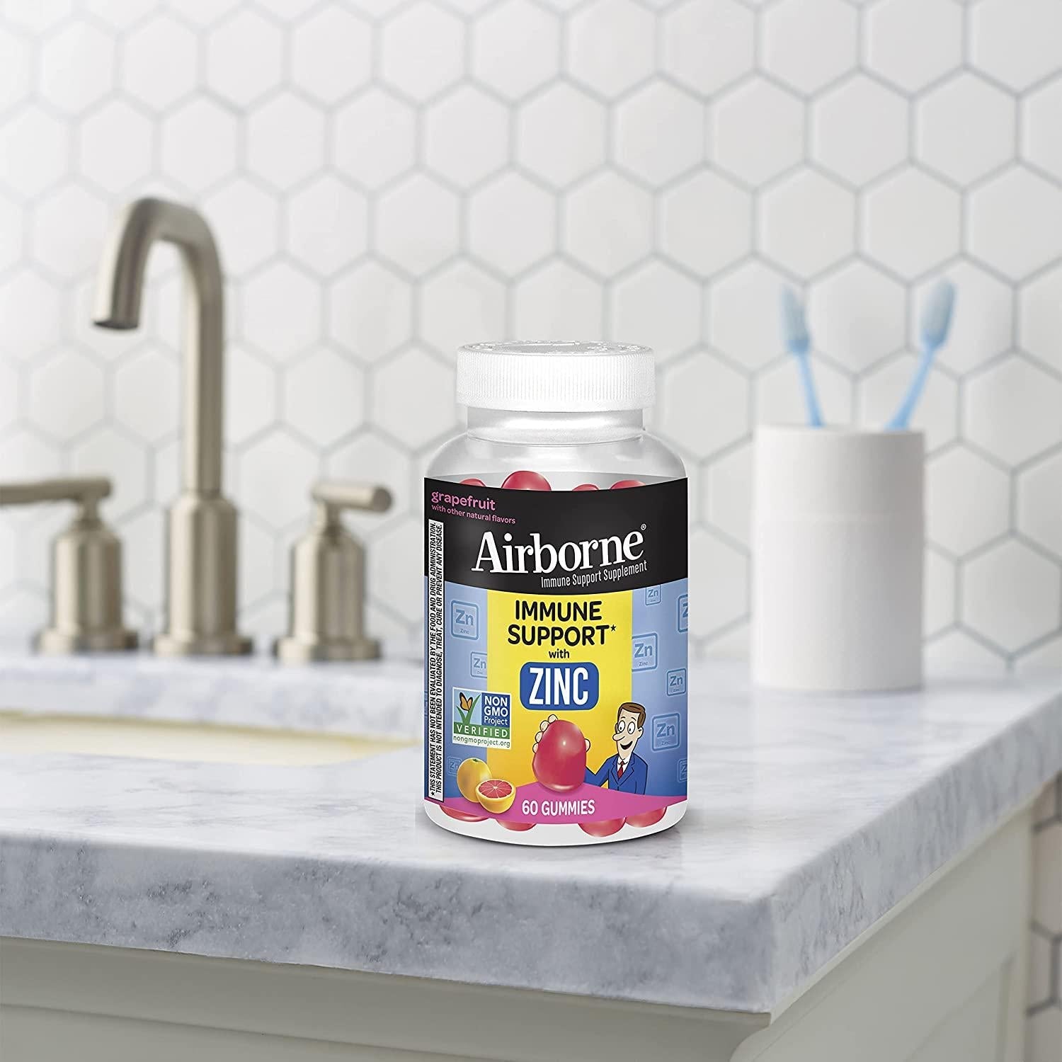 Airborne Zinc Gummies, Chewable Zinc Immune Support Supplement - Non-GMO Project Verified, Gluten and Gelatin Free - (60 count bottle), Grapefruit Flavor