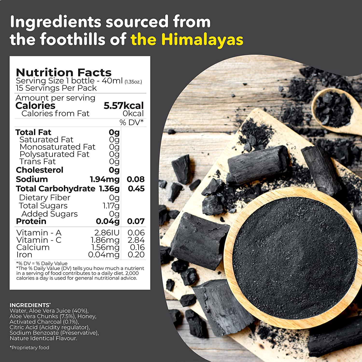 Akiva Love Activated Charcoal with Aloe Vera Pulp Gut Health Shots are all-natural, ayurvedic solutions for cleansing the body of harmful toxins and restoring gut health with the help of two vital ingredients (activated charcoal and aloe vera). Drinking one Activated Charcoal Aloe Vera shot before going to bed every night will leave you invigorated and feeling light and fresh all day long the next day. Our 40ml Ayurveda inspired health shots are specially formulated with Indian superfood ingredients that bring you the best of nature in ready-to-drink and easy-to-carry packs.