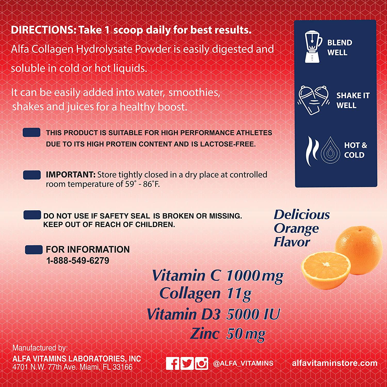 Alfa Vitamins SuperC Immune Powder Mix Formula with Vitamin C 1000mg, Collagen 11g, Vitamin D3 5000 IU, Zinc 50 mg - Orange Flavor 11oz