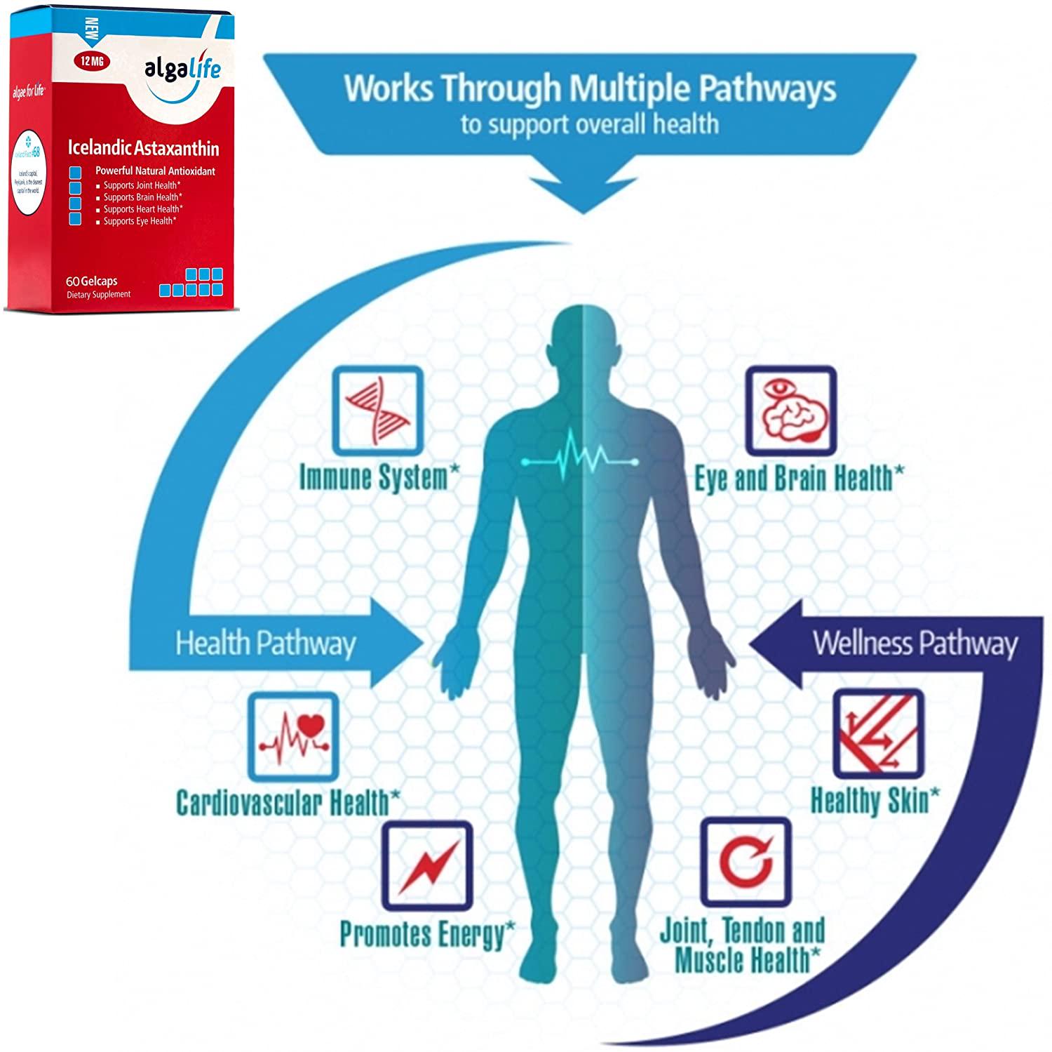 Powerful Natural Antioxidant Supports Joint Health Supports Brain Health Supports Heart Health Supports Eye Health Dietary Supplement Algae For LifeThis powerful antioxidant supports joint, cardiovascular, brain, eye and immune health. Icelandic Astaxanthin is uniquely cultivated in the pristine glaciers of Iceland, away from contamination risk. These optimal conditions creat pure, clean, premium quality Astaxanthin to support your health. Supports a Healthy Cardiovascular System Supports Joint and Muscle Supports Healthy Immune Function Support Healthy Skin Supports Eye & Brain HealthIceland Fact #134Iceland have the longest life expectancy in the world Proprietary cultivation process free from open-air pollutant, pesticides, contaminants and non-GMO Astaxanthin has been clinically studied for safety and health Pure glacial water filtered through layers of volcanic lava rock Grown with 100% renewable, geothermal energy Individually sealed for optimal quality