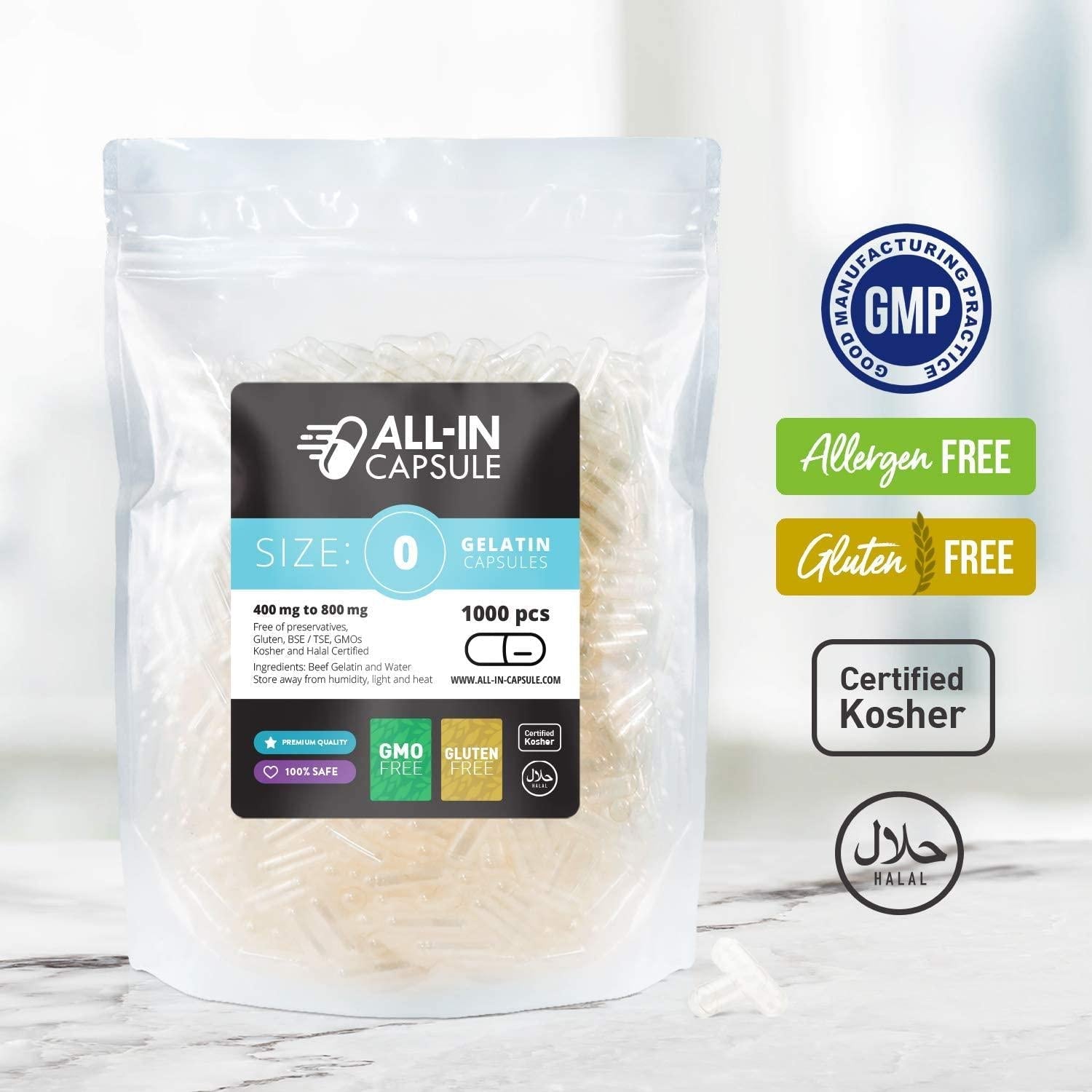 - EASY TO USE: Able to be manually filled with up to 800mg of powder, these 0 gelatin capsules are also compatible with the ALL-IN Capsule filling machine too. However you choose to fill them, the shape and strength of these size 0 capsules will make the entire process simple.
