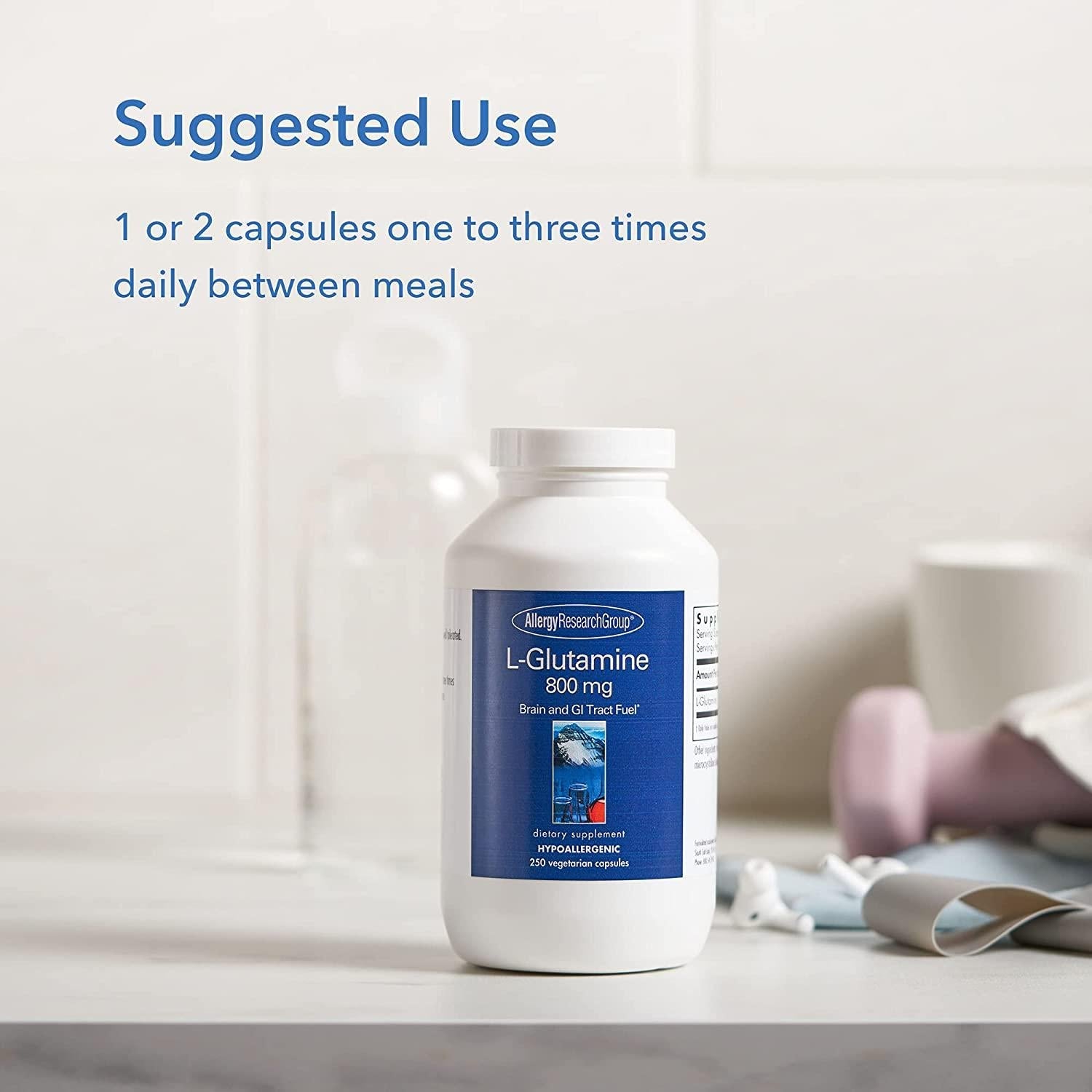 Allergy Research Group - L-Glutamine 800 mg - Amino Acid - Brain and GI Tract Fuel - 250 Vegetarian Capsules