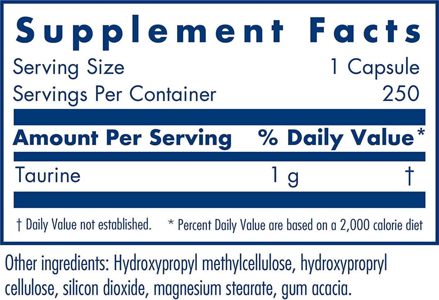 Allergy Research Group - Taurine 1000 mg - Energy, Cardiovascular Support - 250 Vegetarian Capsules