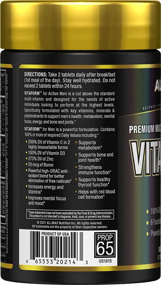 ALLMAX Nutrition Premium Vitaform, Performance Vitamin for Men, 60 Tablets