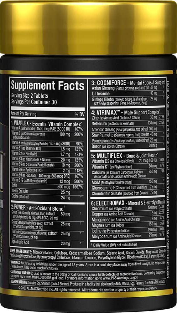 60 tablets, allmax nutrition, anti-oxidant blend, essential nutrients, men, performance vitamin, usa