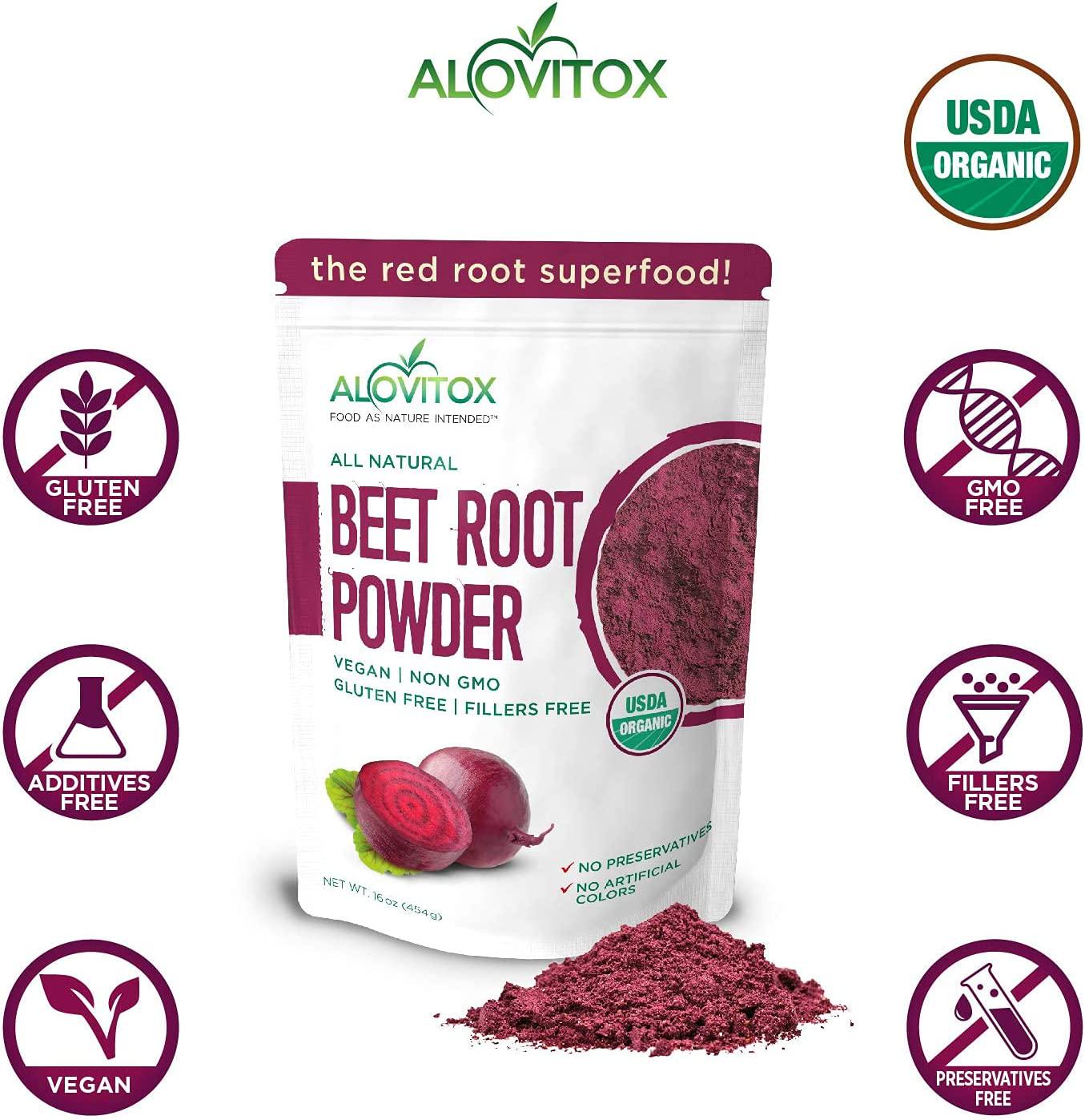 Alovitox Beet Root Powder | 100% Pure, Fresh and USDA Organic Beetroot Extract Powder | Nitric Oxide Superfood | Vegan, Non - GMO and Gluten-Free | Support Energised and Effective Workout Session 16 oz