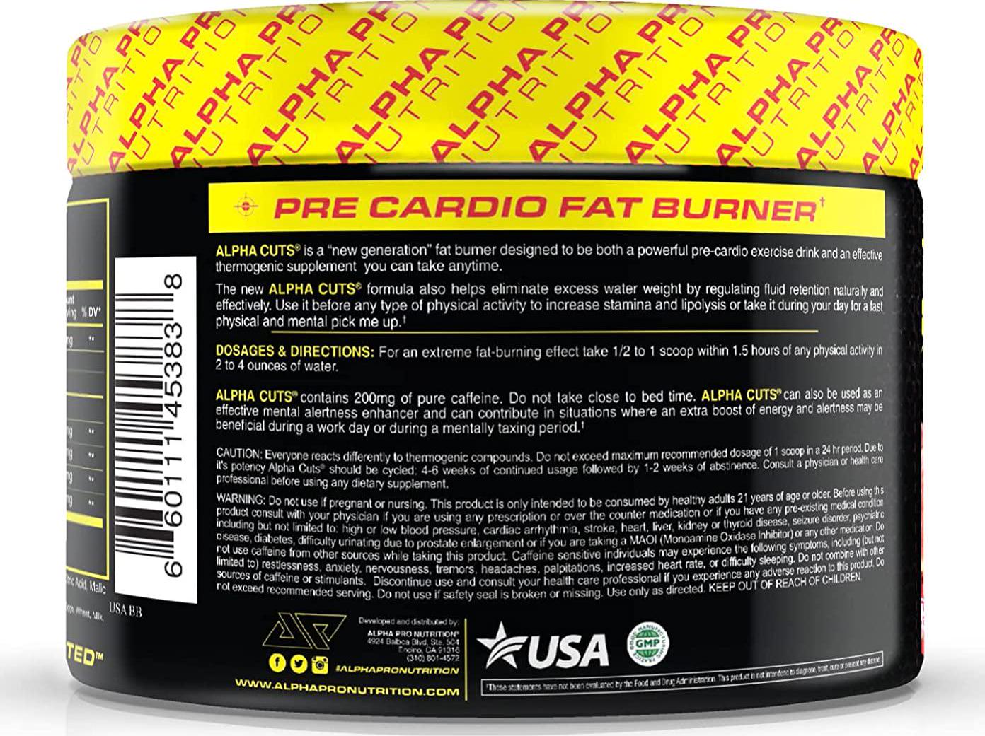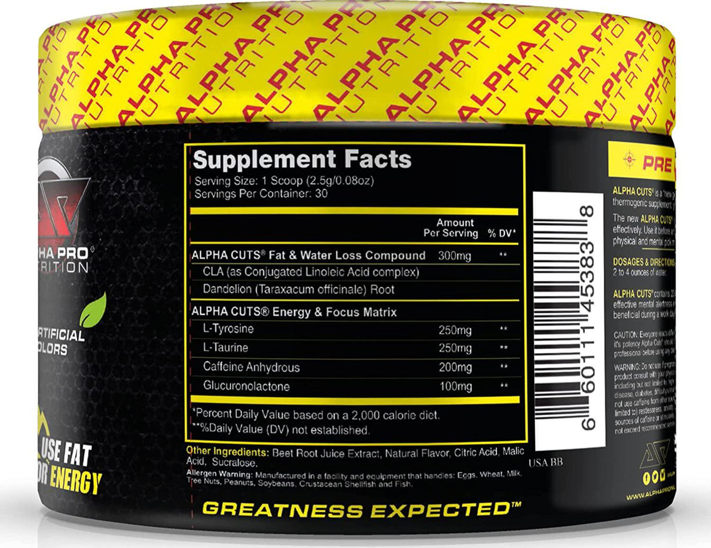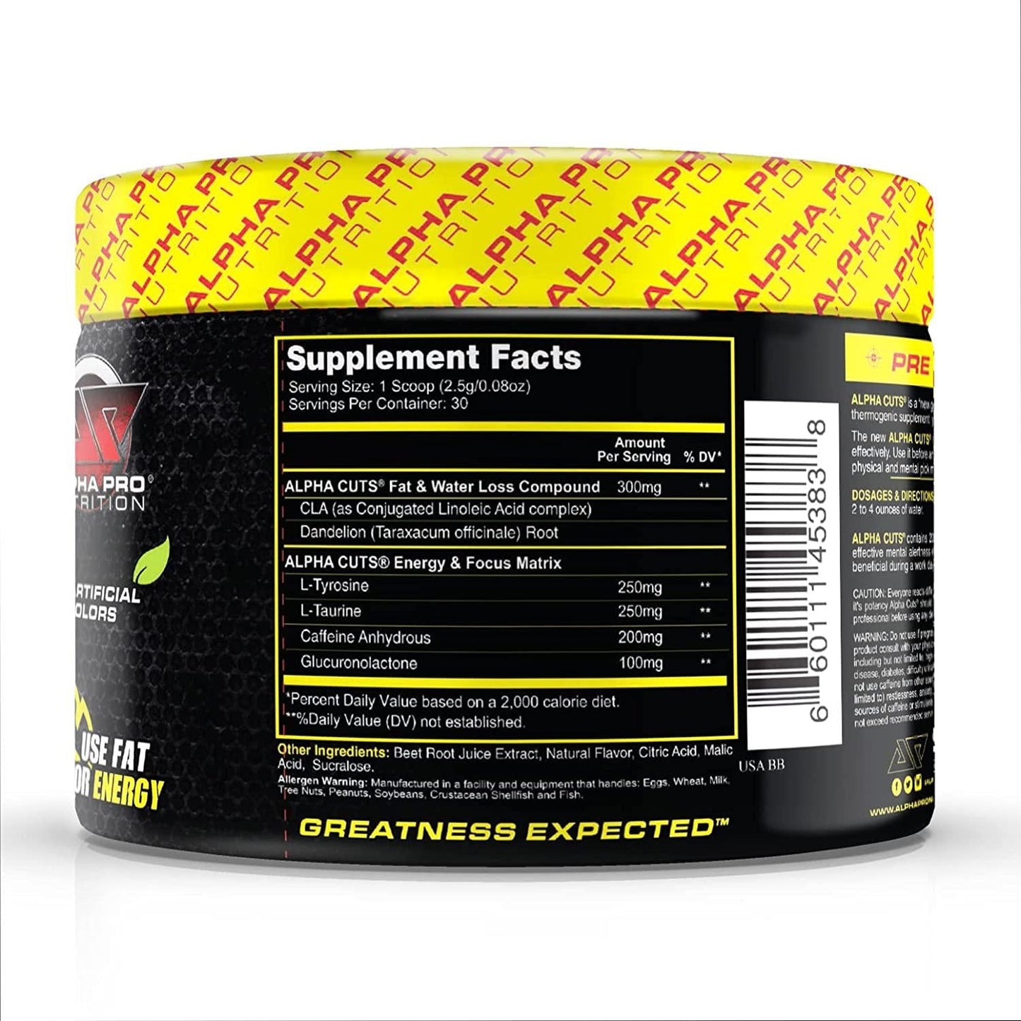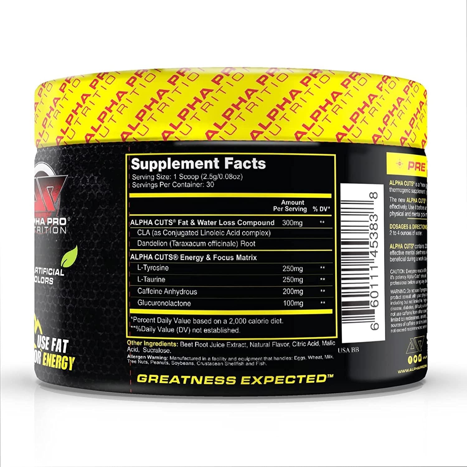 Alpha Cuts Fat Burner Thermogenic Men Women Pre Cardio Workout Weight Loss Drink CLA Watermelon Alpha Pro Nutrition