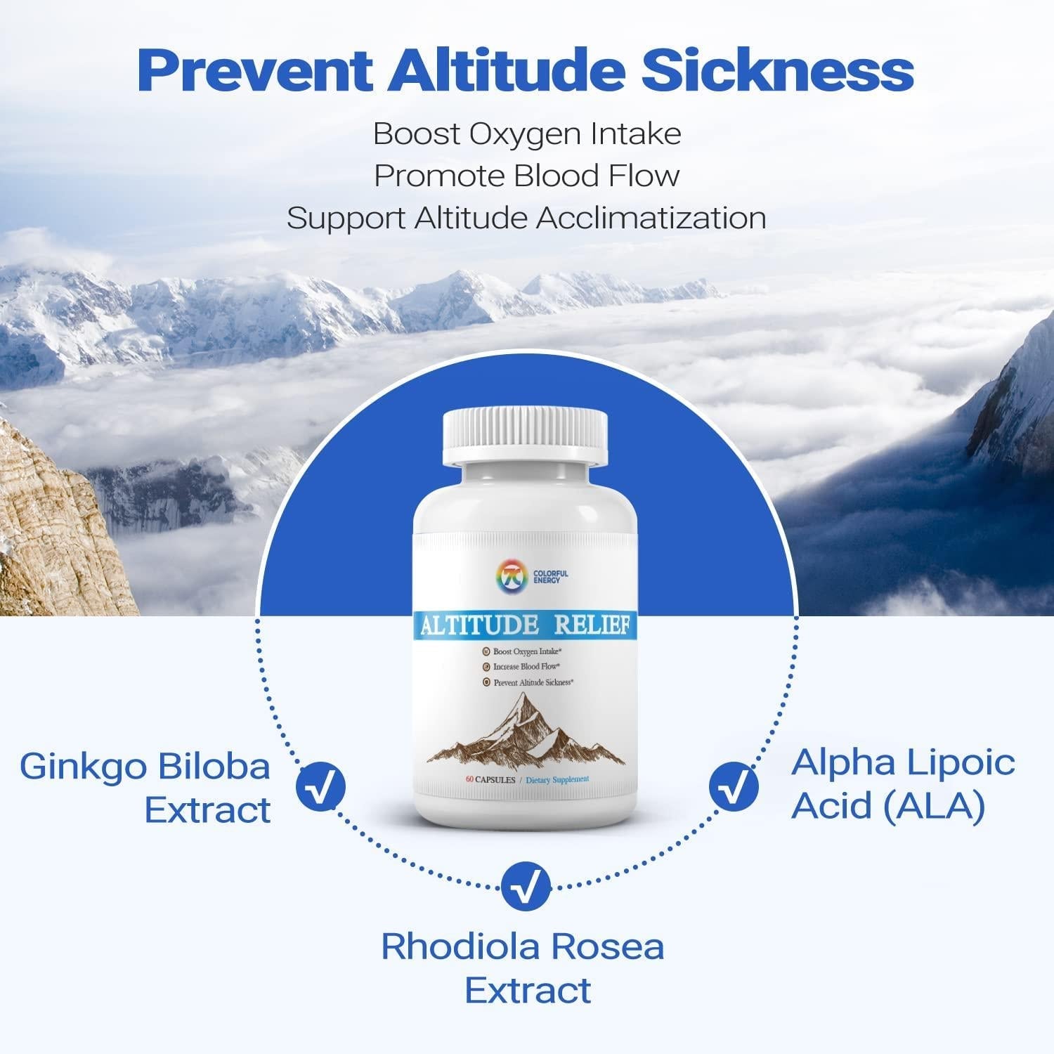 Altitude Sickness Prevention-High Altitude Relief-Ginkgo Biloba, Rhodiola Rosea, Vitamin C,E, Alpha Lipoic Acid, Allergen-Free, No-GMO (60 Capsules)