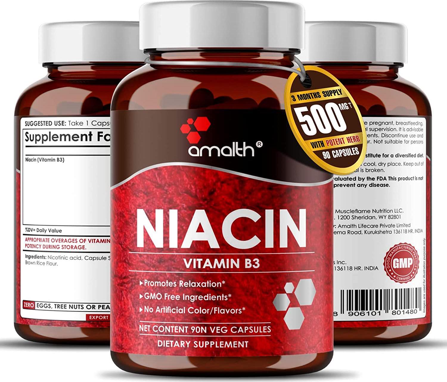 - PREMIUM GRADE A QUALITY INGREDIENTS: Amalth Niacin (Vitamin B3) 500 mg Capsule is made from premium sourced quality nutraceutical ingredients. Amalth Niacin (Vitamin B3) gives a high amount of potency per capsule. Niacin (Vitamin B-3) is an essential B-group vitamin necessary for good health.Our Capsule is free from preservative and other harmful filler.