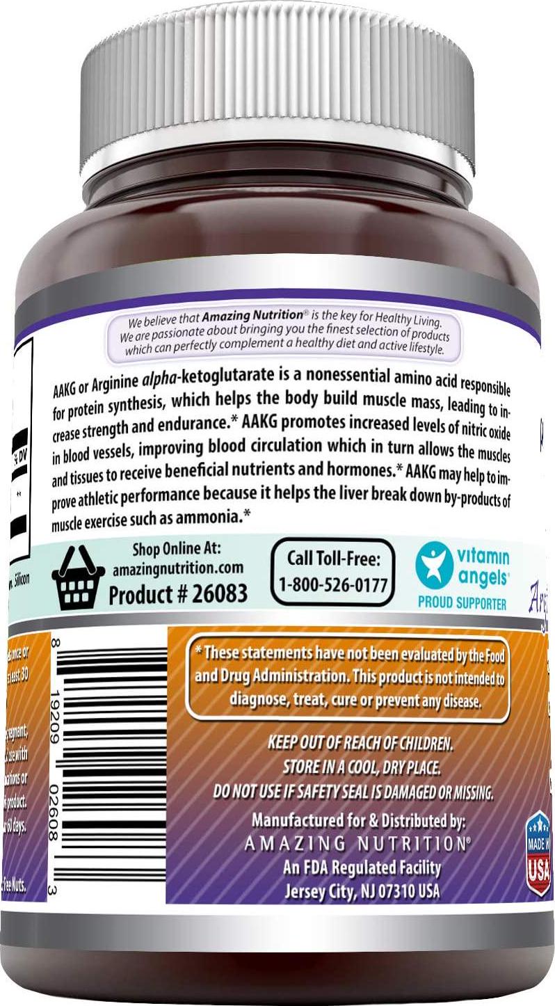 Amazing Formulas AAKG Arginine Alpha-Ketoglutarate 3500 Mg Per Serving, 180 Tablets (Non-GMO) -Supports Synthesis of Proteins* -Supports Lean Muscle Mass, Strength Gain and Endurance*