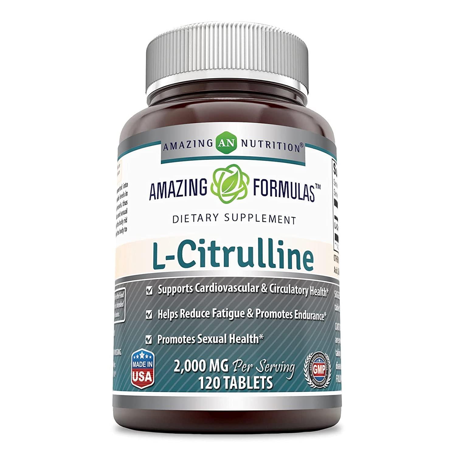 Amazing Formulas L Citrulline 2000mg Per Serving 120 Tablets (Non-GMO,Gluten Free) - Promotes Healthy Circulation and Cardiovascular Health - Enhances Endurance