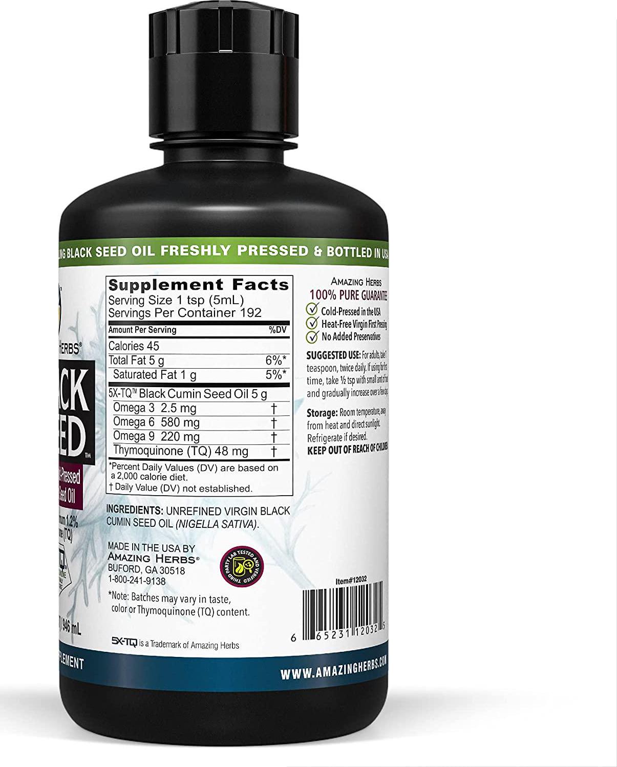 - BLACK SEED EXPERTS - Amazing Herbs Premium Black Seed Oil Formulation Delivers Natural Oil Intended for Oral Administration, Contains Omega Fatty Acids & 5x Thymoquinone for Health Benefits