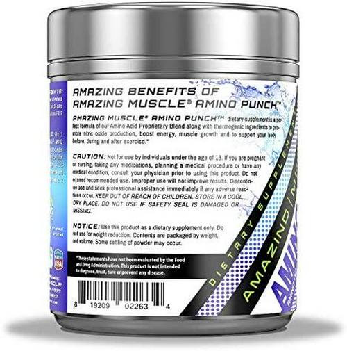 Amazing Muscle Amino Punch 5500 Mg Per Serving of Amino Acids with Stevia -Contains Beta Alanine, Caffeine, Green Tea Extract, Green Coffee Bean - 30 Servings (Blue Raspberry)