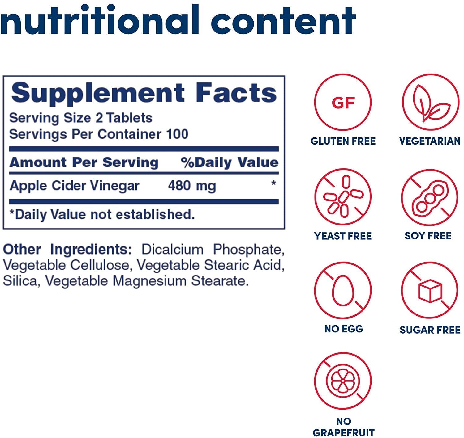American Health Apple Cider Vinegar Tablets - Balanced Diet And Exercise Program Support, No Tart Vinegar Taste - Non-GMO, Gluten-Free - 480 mg, 200 Count - 100 Total Servings