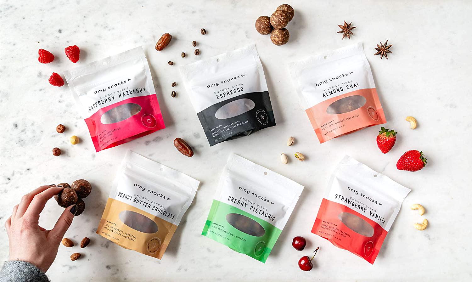 amg snacks, chocolate raspberry energy bites, gluten free, grab and go snack, non gmo, protein bars, usa