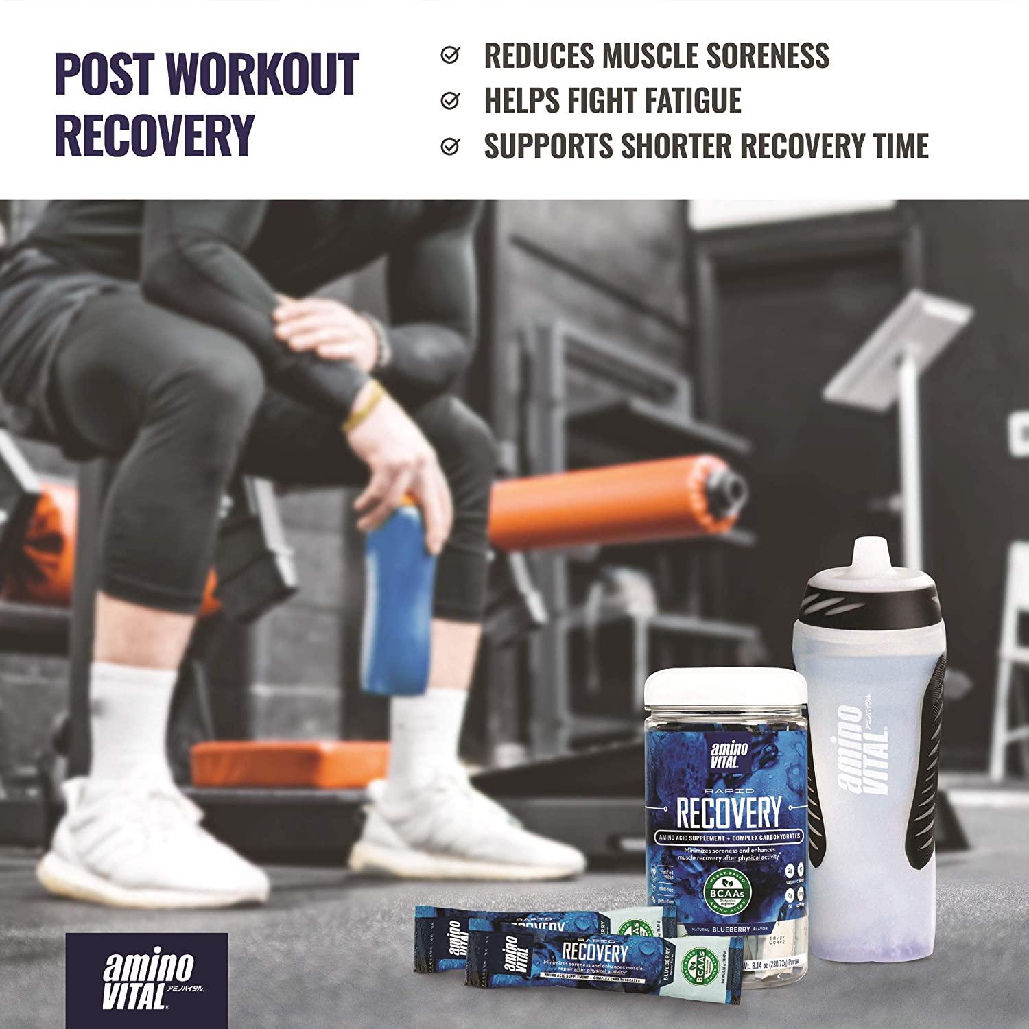 - ADVANCED BCAA BLEND aminoVITAL Rapid Recovery contains 5 essential amino acids (Leucine, Isoleucine, Valine, Arginine, Glutamine) that are beneficial for after workout recovery. Our amino acid mix with complex carbohydrates is designed to replenish your sore muscles after tough workouts.*