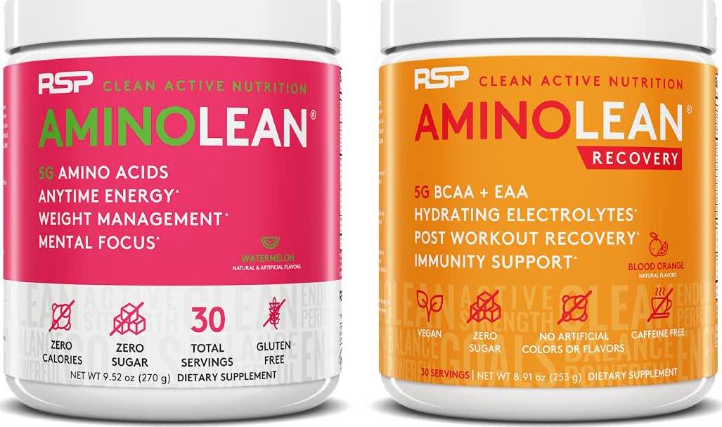 AminoLean Pre Workout Energy (Watermelon 30 Servings) with AminoLean Recovery Post Workout Boost (Blood Orange 30 Servings)