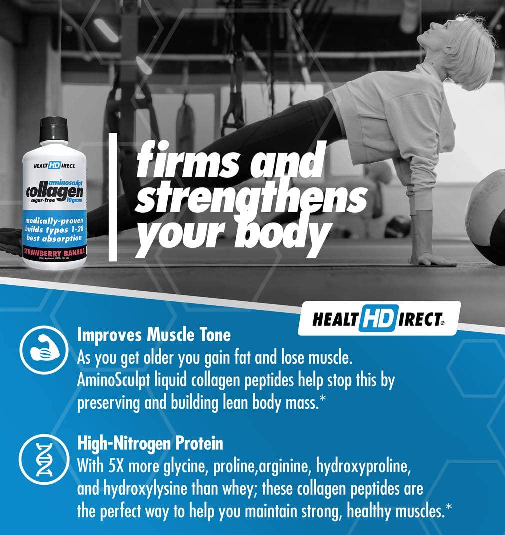 AminoSculpt Collagen Sugar-Free 10 Gram, Strawberry Banana, 30 Fl Oz by Health Direct
