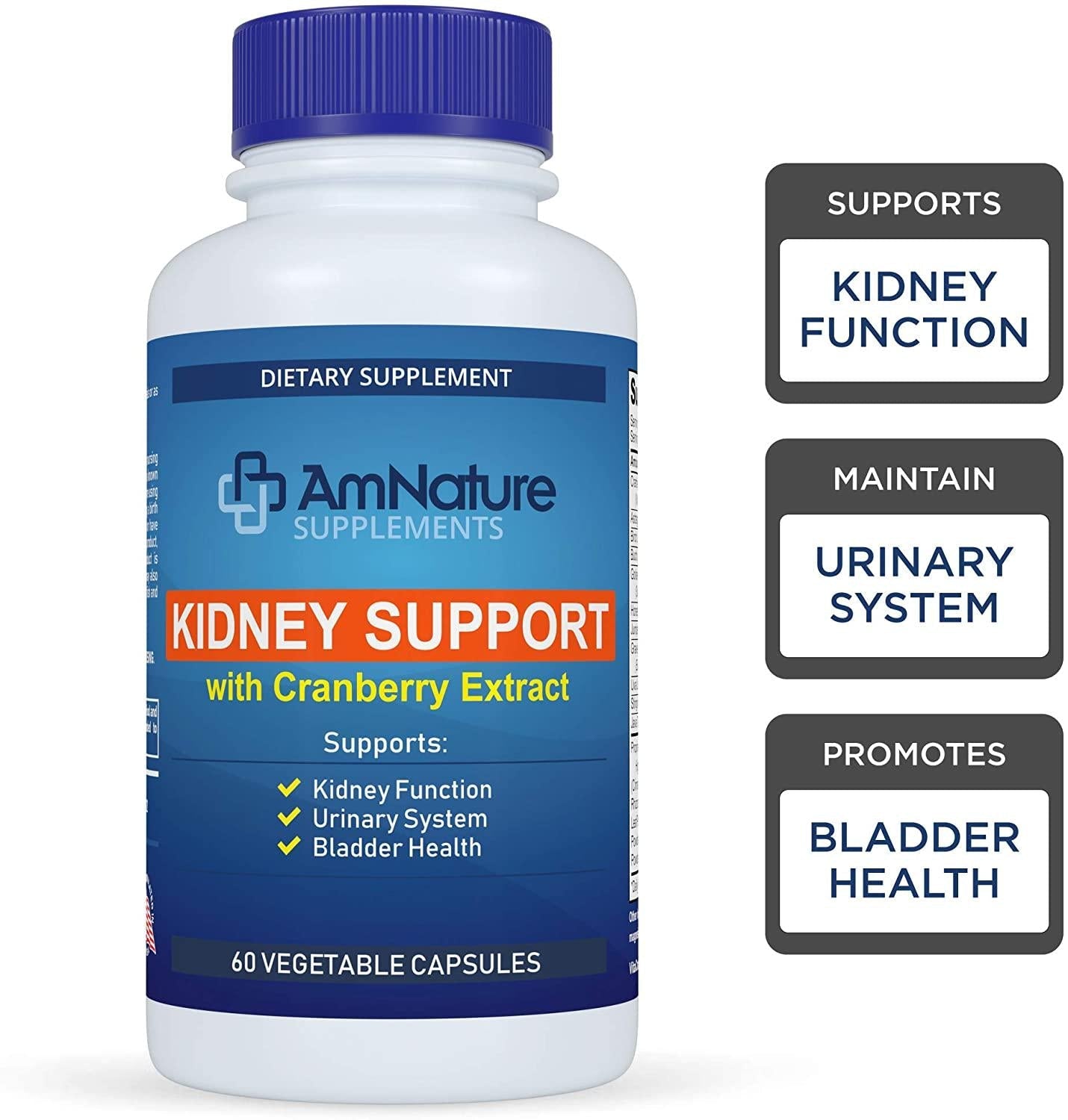 AMNATURE KIDNEY SUPPORT - Superb Blend of Cranberry Extract and 20 Other Herbs and Nutrients Formulated to Help Support the Kidneys and Urinary Tract, 60 Capsules, 100% Satisfaction Guarantee