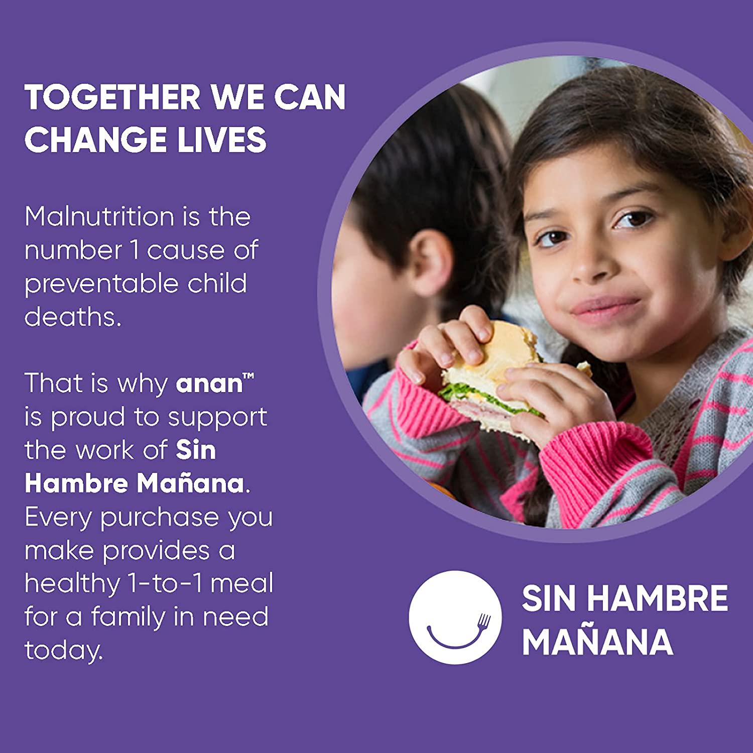 - SIN HAMBRE MAÑANA: Anan wants to give back to the community and does so by partnering with SIN HAMBRE MAÑANA. For every purchase, anan gives a day's supply of food for an entire family in need to combat malnutrition in the world.