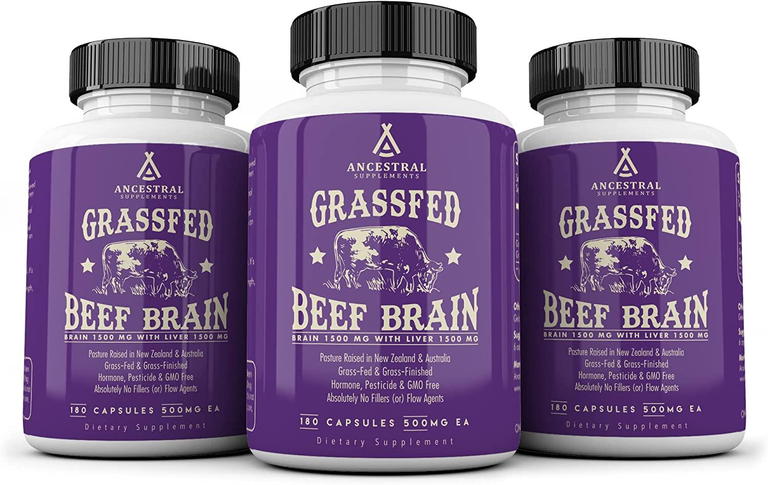 Ancestral Supplements Grass Fed Brain (with Liver) Supports Brain, Mood, Memory Health (180 Capsules)
