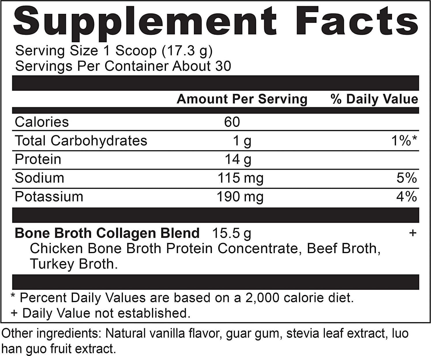 - EASY TO USE AND PACKED WITH NUTRIENTS: One serving of Ancient Nutrition Bone Broth Collagen provides 14g of protein and 60 calories in every scoop! Easily and smoothly mix in protein shakes, smoothies, juices and more to boost collagen, gelatin, glucosamine, chondroitin and superfoods often missing in the diet! Try it in coffee or tea!