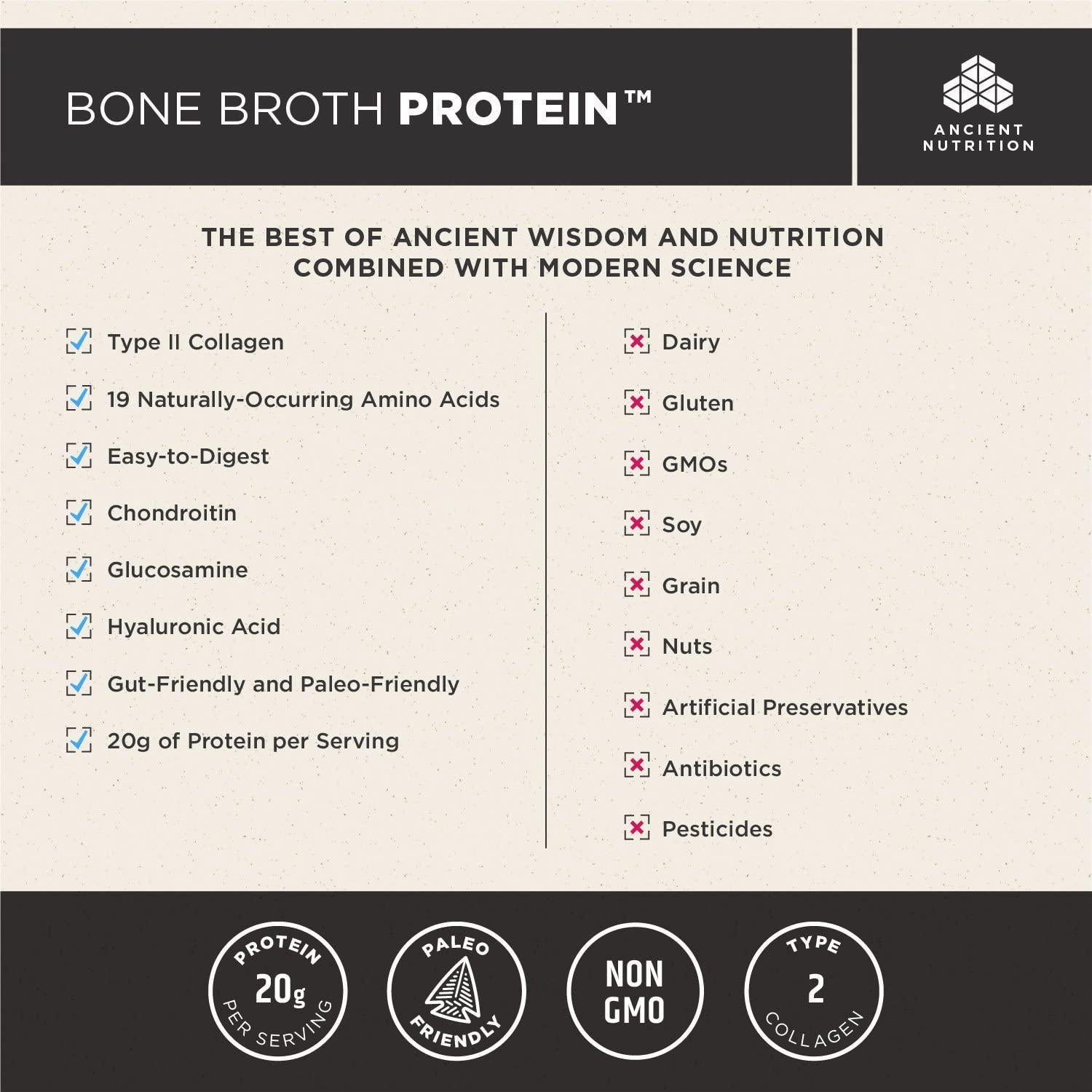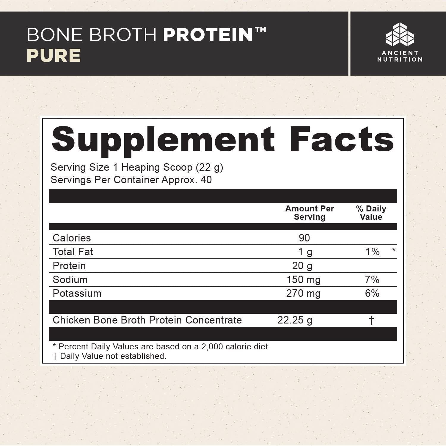 Ancient Nutrition Bone Broth Protein Powder, Pure Flavor, 40 Servings Size, 31.4 Ounce