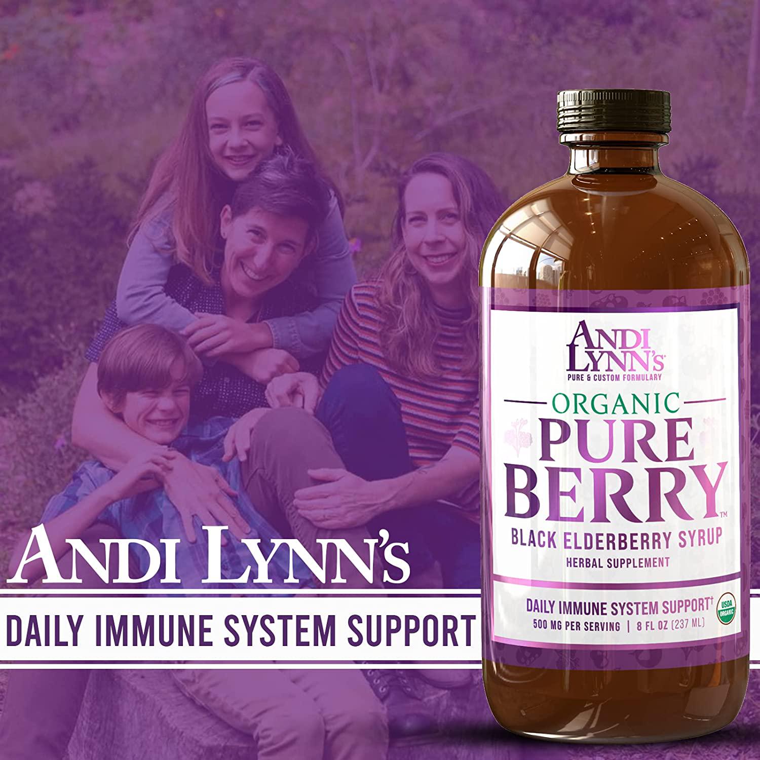 Who is this product forI can safely say just about anyone in todays society where many of us are constantly on the go, allowing less time for nutritious meals and down time. Pure Syrups are safe for kids ages 2-12, we reduce the recommended serving by for children of those ages. It is safe for pregnancy and nursing, as we specifically chose herbs that are pregnancy and nursing friendly.We offer 500mg per teaspoon, strongest formula available. We stayed away from clove in Elderberry Syrup, because so many of our customers have families with little children and are in the childbearing season, and clove is contraindicated here.Health Benefits of Black Elderberries: Daily Antioxidant support Scientifically tested Great tasting syrup Immune Active Formula Kid Safe FormulaElderberries have traditionally been used for daily and seasonal immune support*. Our recipe is a potent, hand-crafted formula with certified organic Black Elderberry juice organic honey, and is loaded with vitamins, minerals and anthocyanins. Pure offers you an effective and great tasting source for a daily dose of health*. Why Andi Lynns Pharmaceutical grade organic elderberry juice. Juice maintains the whole fruit matrix to deliver all of elderberries natural nutrients. No chemical preservatives, no harmful chemicals. Traditional recipes with a handmade approach and a local twist. Unique formulas formulated to provide safe and effective outcomes. Seasonal elderberry syrup blends designed to offer support as the seasons change. Herbal approach based on a blend of tradition and scientific research. Dedicated to the craft of preserving culinary and medicinal herbs.Youre covered by our 100% Money Guarantee. Click Add to Cart now to own the only Elderberry Syrup with Honey you will need.