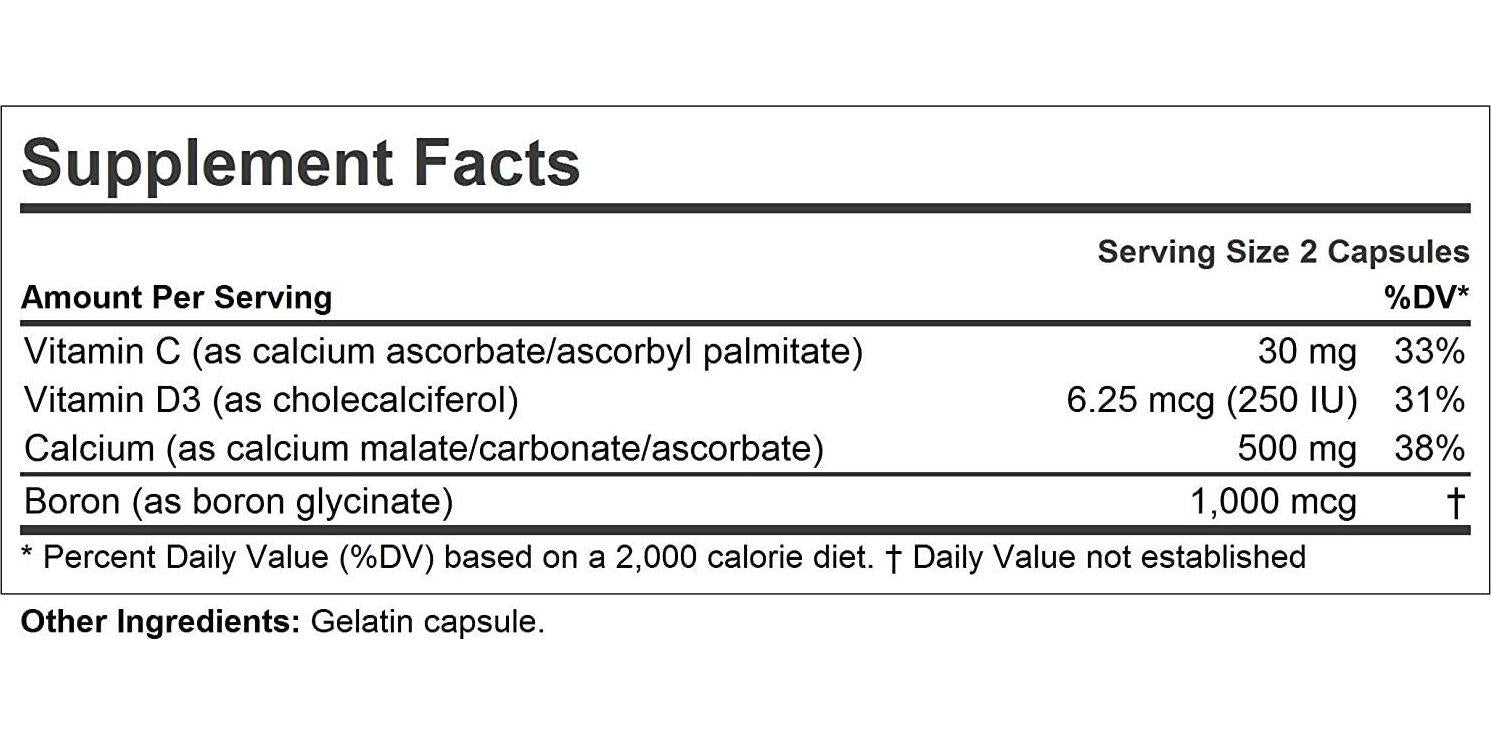- SUPERIOR 100% PURE BIO-ACTIVE INGREDIENTS – Provides ultra-fine, super-soluble powder of 500 mg Calcium, Vitamin D3, Boron and Vitamin C. Contains NO Milk / Dairy-Free, Gluten-Free; NO soy, yeast, wheat, sodium, salt, sugar, fat, cholesterol, color, preservative, common allergens or manufacturing additives.