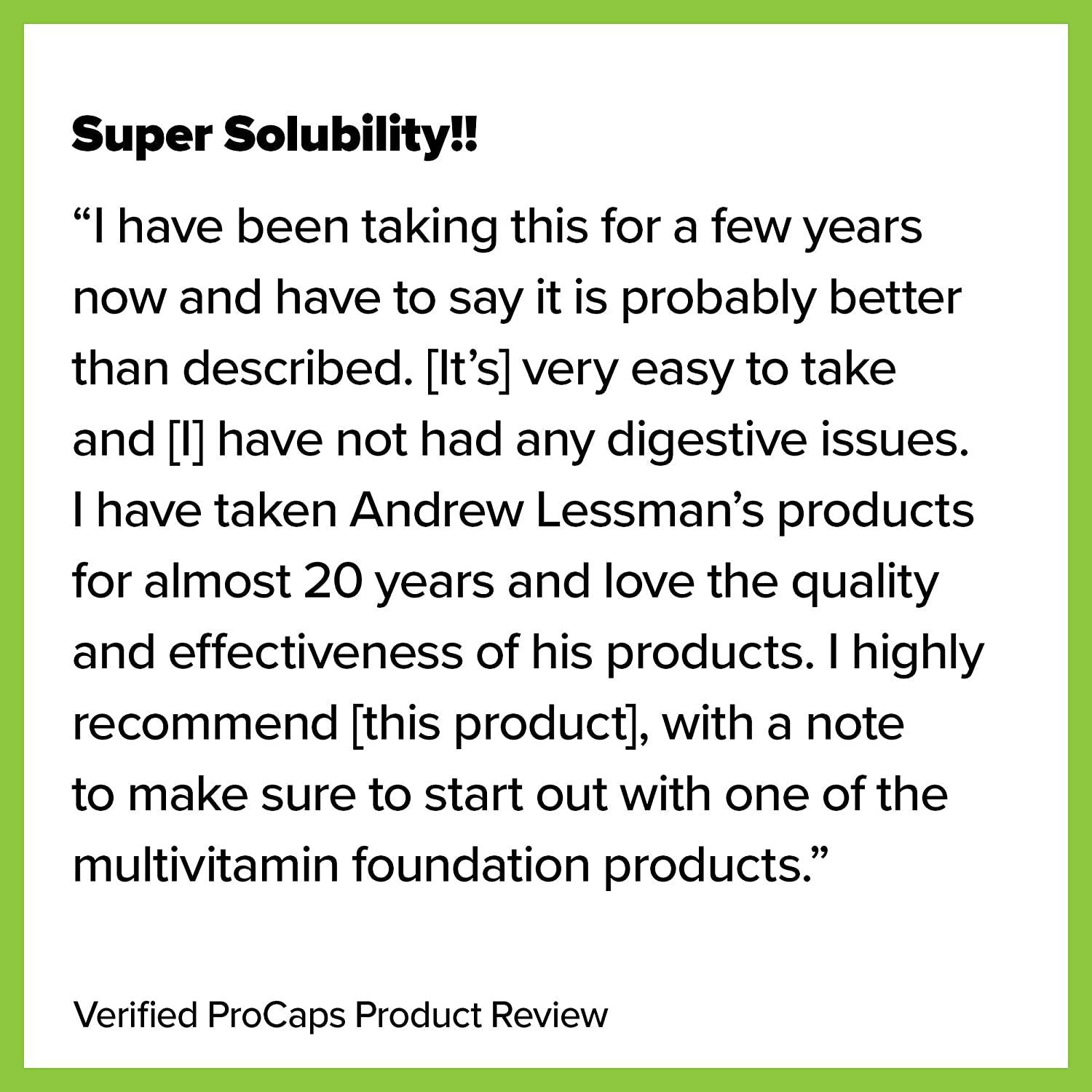 Andrew Lessman's Calcium-Magnesium Intensive Care is a mild all-natural formula designed to address the special requirements of virtually all individuals, particularly women, to consume extra Calcium, Magnesium, and Vitamin D3 to support bone health. This mild, easy to absorb formula is particularly important for women who have challenges with ordinary calcium tablets, but must consume Calcium and Vitamin D3 to build and maintain a strong, healthy skeleton. Calcium and Magnesium are two of the most abundant minerals on our planet, yet they are sadly lacking from our diet and equally difficult to absorb. It is also critical to remember that without Vitamin D3, which is just as scarce as Calcium, we cannot absorb and utilize what little Calcium we manage to consume. In fact, inadequate Calcium, Magnesium and Vitamin D3 intake poses a very real and substantial threat to the long-term health of our bones and bodies in this country. Making matters worse is the fact that Calcium itself is relatively insoluble and very hard to absorb from supplements, particularly those large calcium tablets. We overcome this problem by placing ultra-fine, super-soluble, powdered forms of Calcium and Magnesium into small, easy-to-swallow capsules that are guaranteed gentle even to the most sensitive stomachs. This eliminates the chalky taste, poor absorption and stomach upset that make ordinary calcium supplements so unpleasant to use. Calcium-Magnesium Intensive Care is designed to be an effective way of delivering the Calcium and Magnesium we so desperately need without the problems associated with ordinary supplements. Because of its ultra-fine powder and super-soluble ingredients, our Calcium-Magnesium Intensive Care remains mild despite delivering 500 mg of Calcium, 200 mg Magnesium, 1,000 mcg of Boron and 250 IU of Vitamin D3 in two small easy-to-swallow capsules.