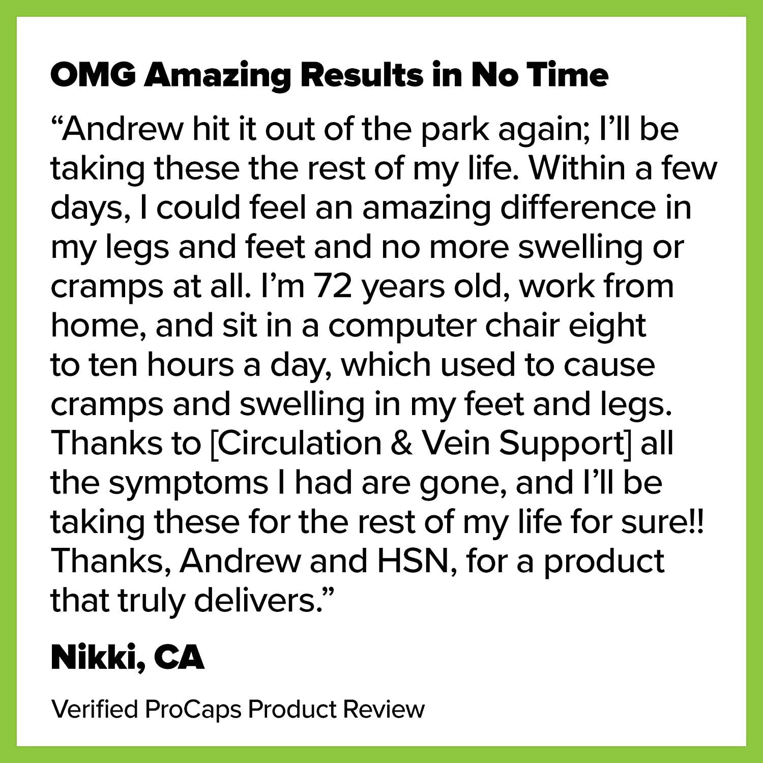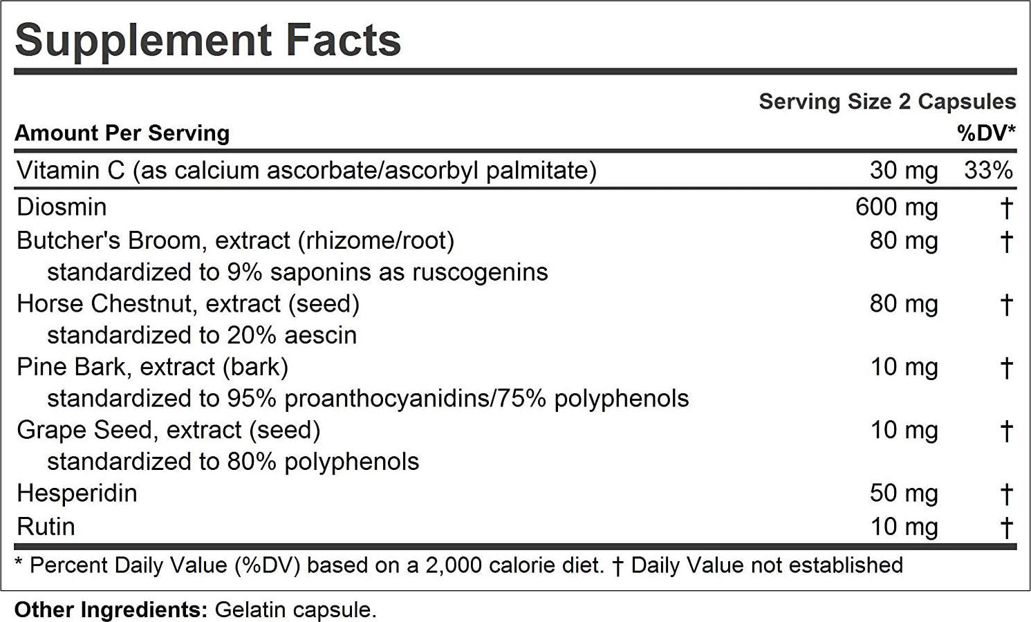 Andrew Lessman's Circulation and Vein Support is a blend of potent, natural compounds to support the challenged circulation in our legs. This unique formula is designed to combat the natural swelling and enlargement in the veins and tissues of our legs that occur with aging and daily activities. The blood vessels in our legs are perhaps the most challenged in our body, since they must battle gravity to transport blood from our furthest extremities back to the heart. It is this difficult journey that causes the enlargement, swelling and heaviness of the tissues and veins of our feet, ankles and calves. The normal aging process adds to this uncomfortable burden, as does prolonged standing or sitting, as well as stress, overweight and high temperatures. Our primary ingredient, Diosmin has been clinically shown to offer extensive benefits to the delicate veins and capillaries of the legs. It has been used in Europe for over 50 years and its benefits established by decades of extensive clinical research. We also add Butcher's Broom - a traditional plant-based ingredient, which has been clinically studied in Europe where it is used to support tired, heavy legs and leg vein health. We also add high levels of OPCs from standardized extracts of Pine Bark and Grape Seed. OPCs are unique compounds that target leg circulation. In short, aging and our modern lifestyle challenge the circulation in our legs and this unique formula provides the natural relief these overworked tissues deserve.