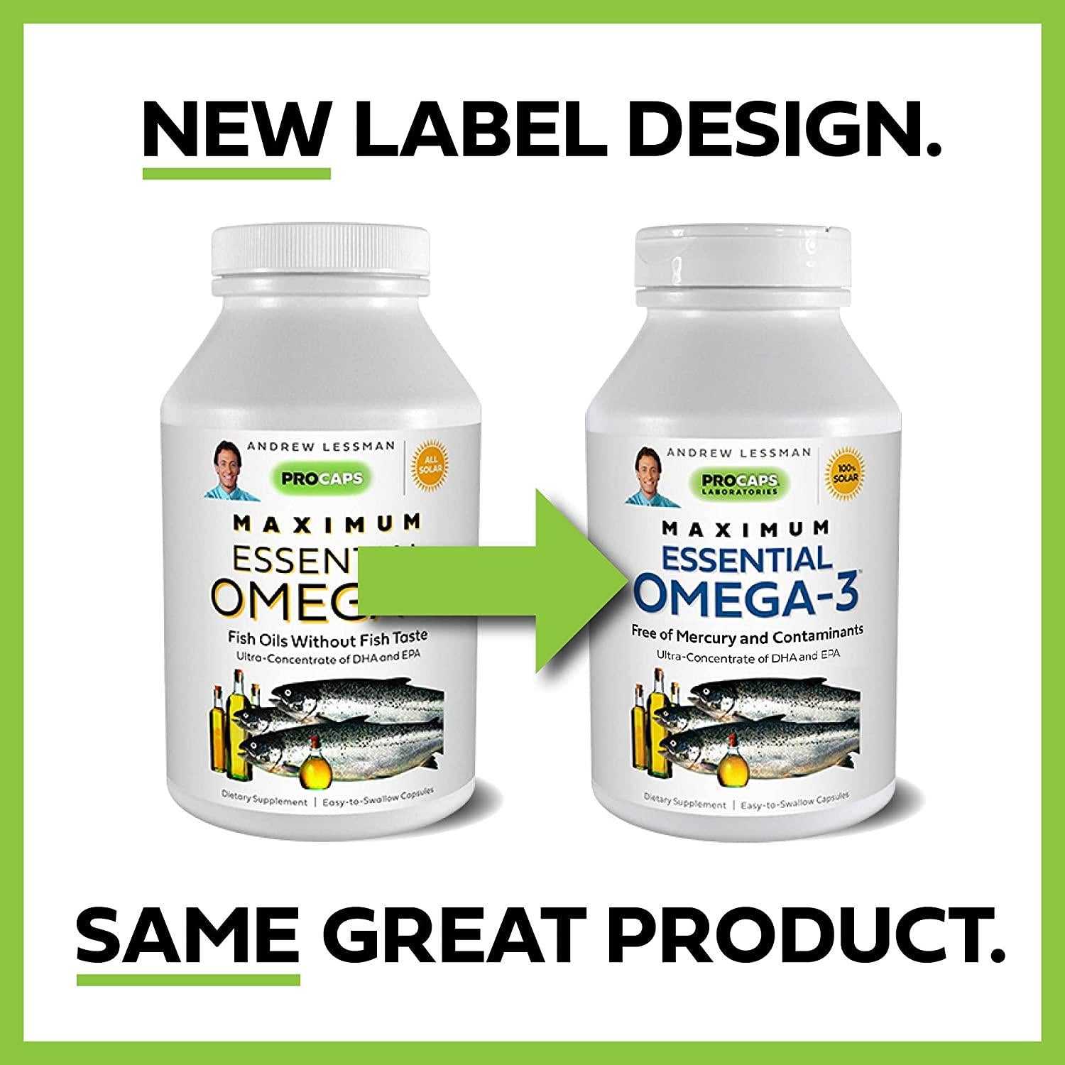 Andrew Lessman's MAXIMUM ESSENTIAL OMEGA-3 is our ultra-pure, highest potency blend of Omega-3 oils. Our Omega-3s exist in their most active, natural triglyceride form and NOT as inferior ethyl esters. Omega-3s are absolutely essential for our good health, yet they cannot be made by the body, so their benefits are only available from cold-water fish or a formula Maximum Essential Omega-3. Research has shown that diets rich in Omega-3 oils are associated with superior heart, brain, circulatory and general health; yet sadly, the American diet delivers alarmingly low levels of these precious fatty acids. Our Maximum Essential Omega-3 is a uniquely concentrated source of both fish and flaxseed oils, delivering our highest levels of DHA (Docosahexaenoic Acid) and EPA (Eicosapentaenoic Acid), as well as DPA (Docosapentaenoic Acid). Typical Omega-3 formulas focus on EPA, which is less costly to provide, whereas our Omega-3s target vital DHA, which is essential for brain and eye function. In fact, the highest functioning areas of the brain and the most critical parts of the eye (macula and retina) contain and require ultra-high levels of DHA. Although fish oil supplements have long been praised for their countless health benefits, they are equally well-known for their potential contaminants; however, our Maximum Essential Omega-3 allows you to enjoy all the benefits of fish oil with NO mercury, NO contaminants and NO stomach upset. These statements have not been evaluated by the Food and Drug Administration. This product is not intended to diagnose, treat, cure, or prevent any disease.