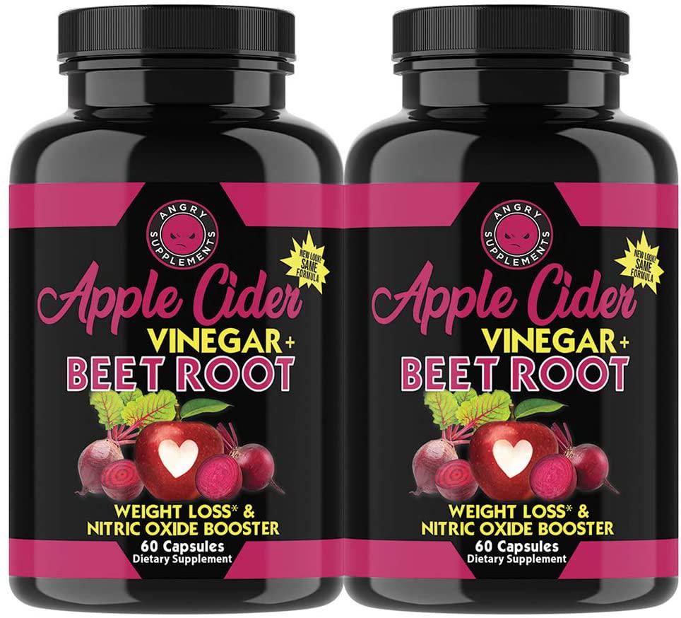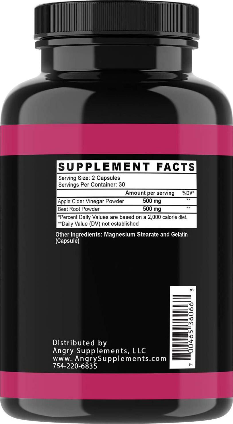 Angry Supplements Apple Cider Vinegar + Beet Root Capsules, Detox Pills, Nitric Oxide + Energy Booster (2-Bottles)