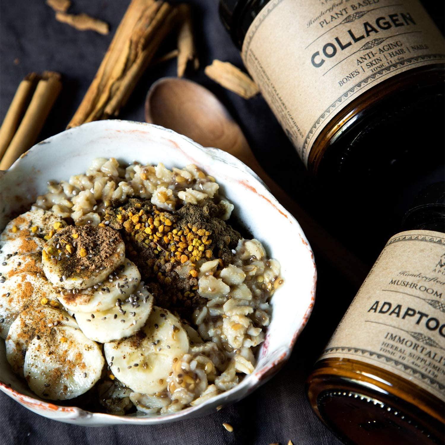 adaptogenic, collagen booster, gluten-free, organic, plant based, vegan