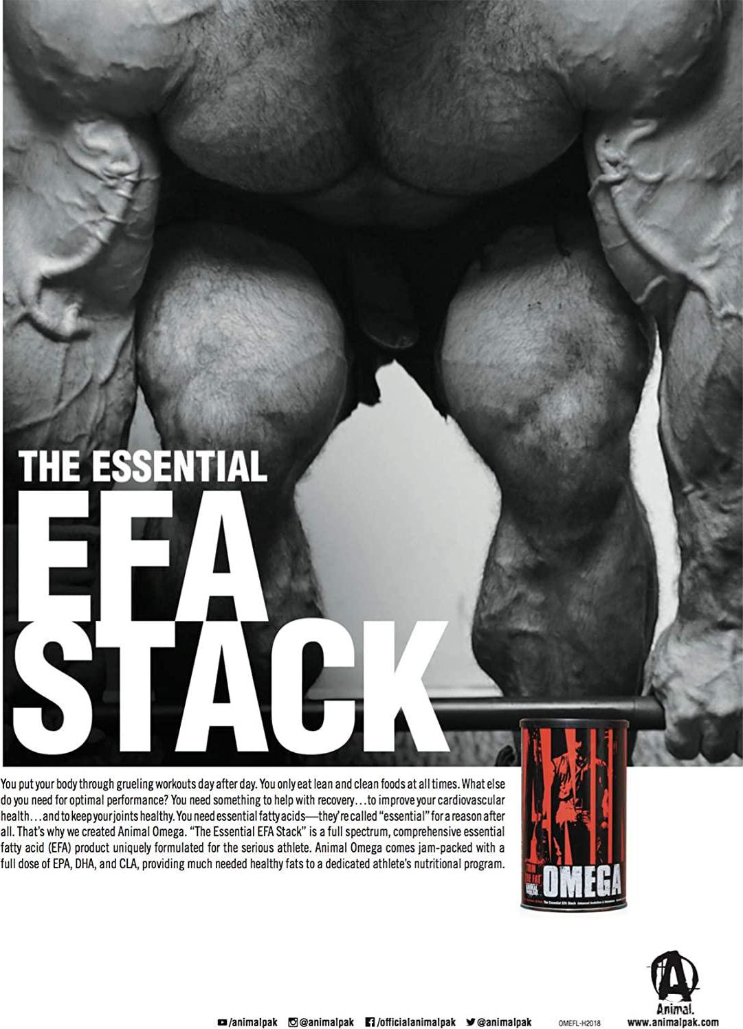 - Designed for the bodybuilder that doesn't get enough essential fatty acids (EFA's) in their diet. It's near impossible to plan the perfect diet and eat enough clean macros and get your omegas every single day. Animal Omega has you covered, without a second thought about good fatty acids in your diet