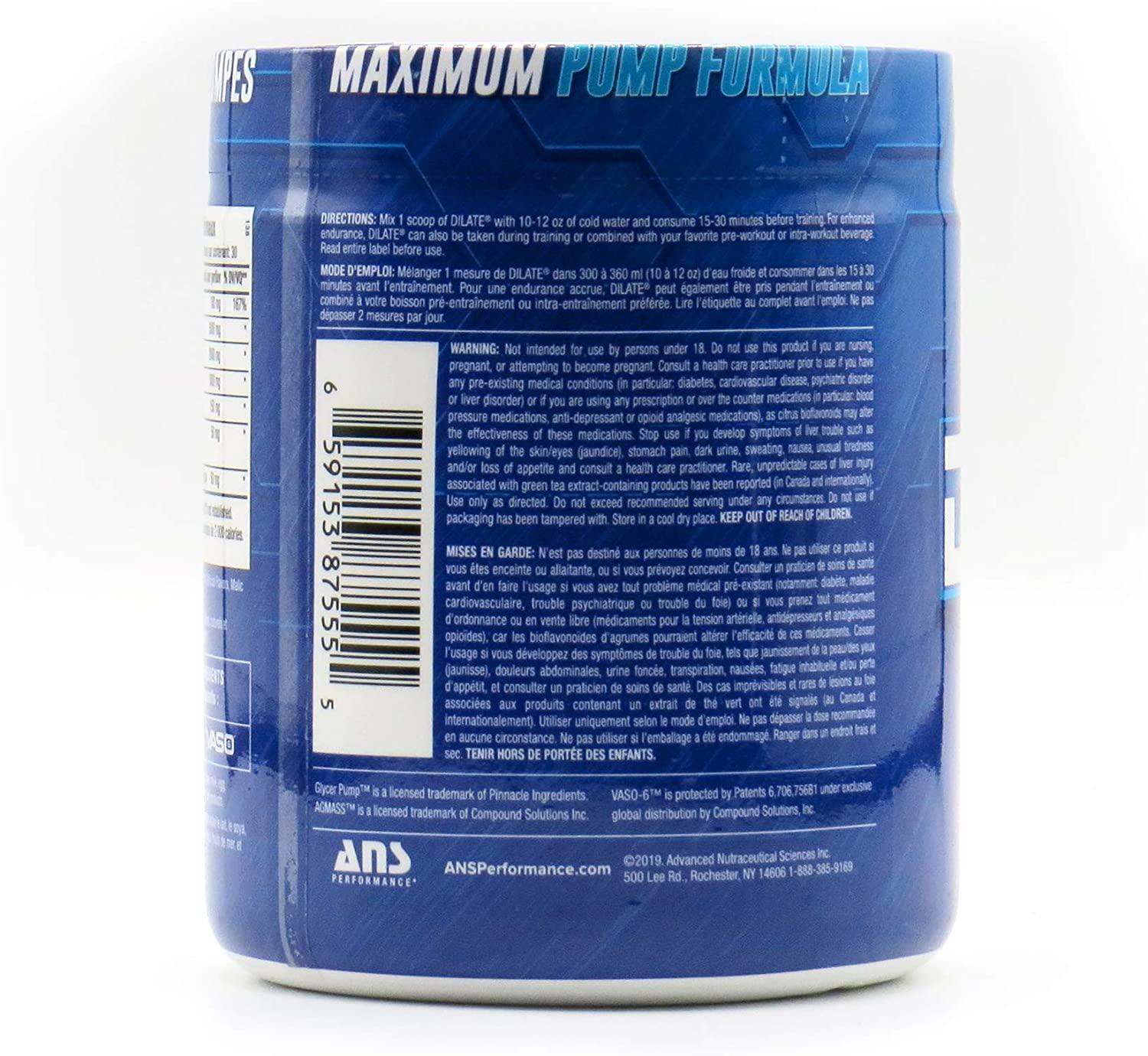 ANS Performance DILATE V2 - Nitric Oxide Pre Workout Supplement (30 Servings, 9.5 oz) - Stimulant and Caffeine Free, Strength and Pump Booster | Increases Blood Flow to Muscles for Vascularity and Growth
