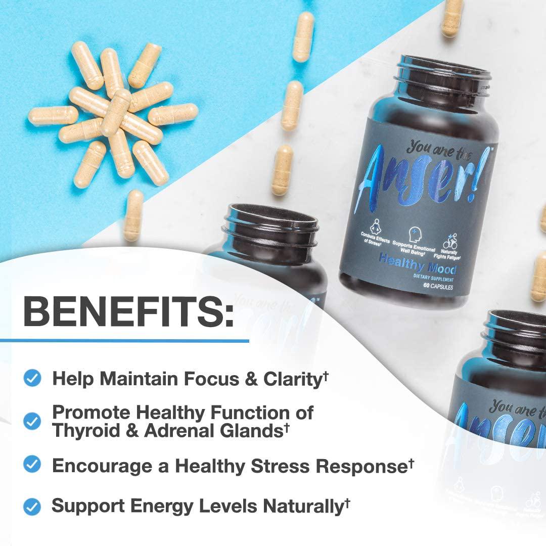 - Natural adaptogens for stress relief: Anser healthy mood is free of caffeine and other stimulants to provide you with a natural alternative to feel at ease